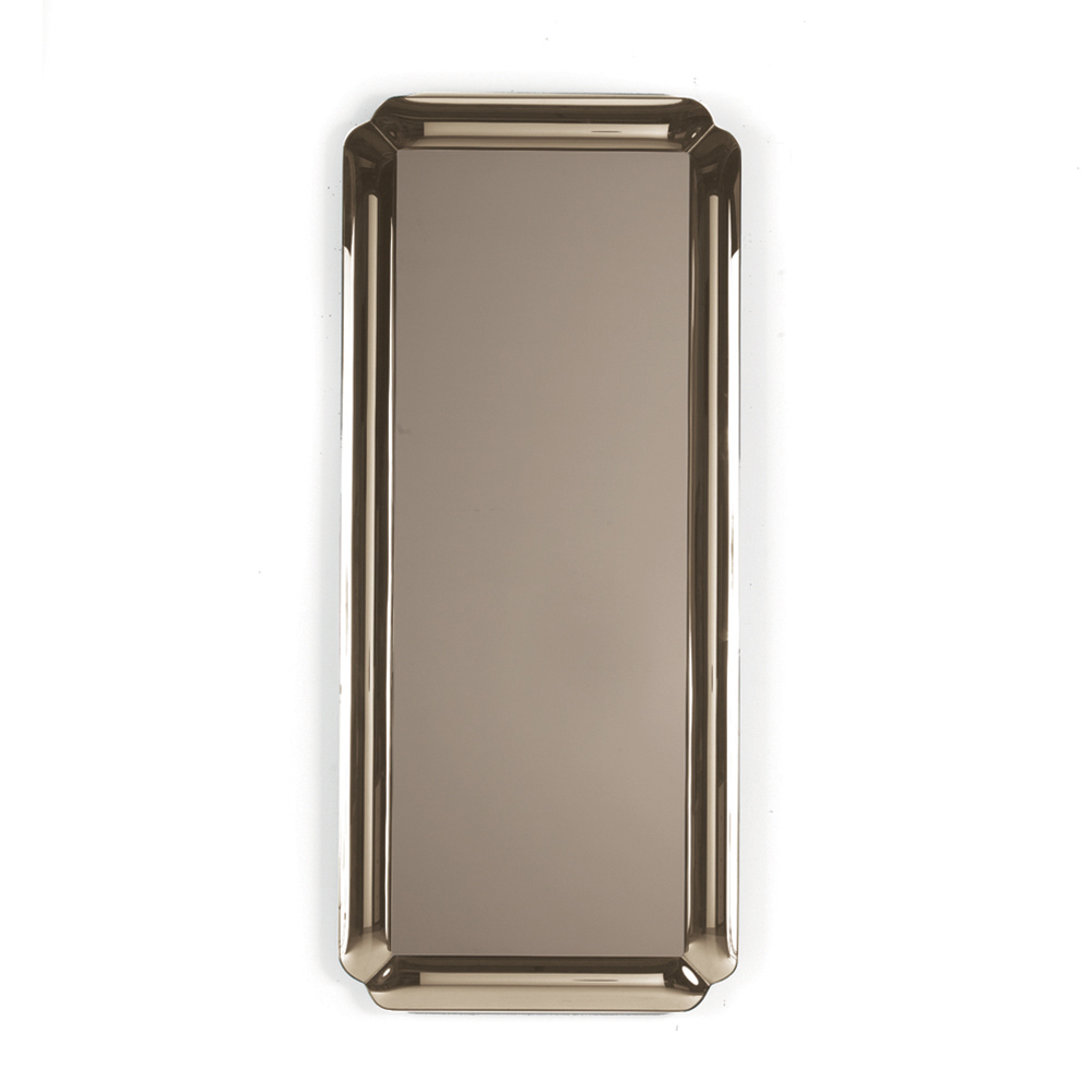 Thanks to its balance between minimalism and material details, this mirror represents an elegant solution for modern and contemporary environments, helping to amplify the light and give depth to the wall.