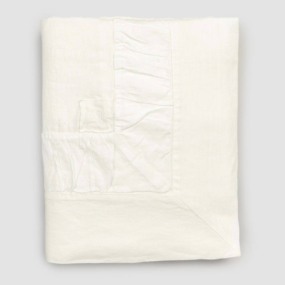 Rectangular Tablecloth in White Linen, Frame and Embossed Edge Fold - Mippel