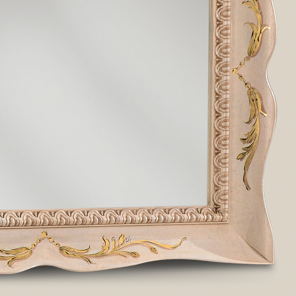 Classic style rectangular mirror with decorated frame made of white wood , perfect for decorating your living area with elegance and personality.
