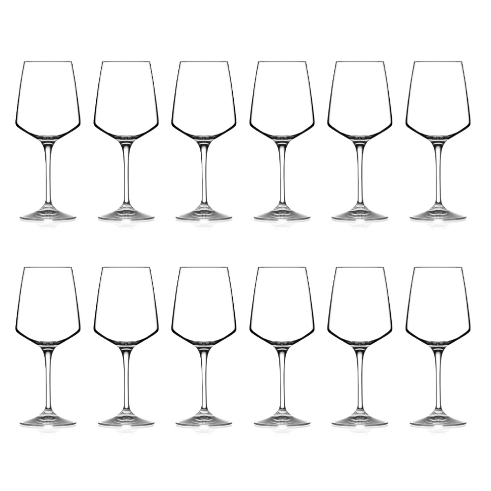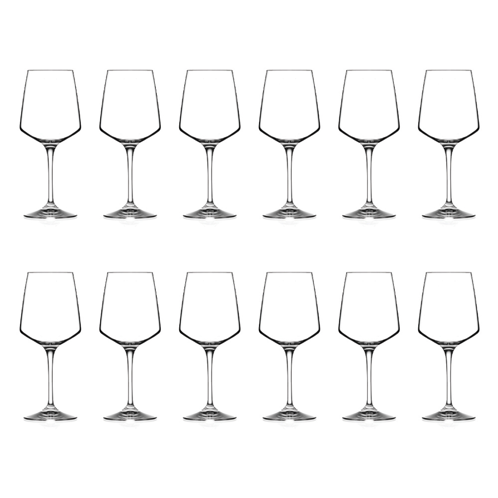 Set of white or red wine glasses in eco crystal 12 pieces made in Italy.