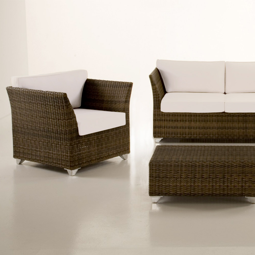 Garden lounge set in aluminium, REHAU brand Polyrattan weave and cushions