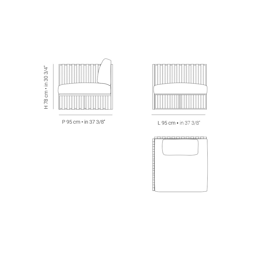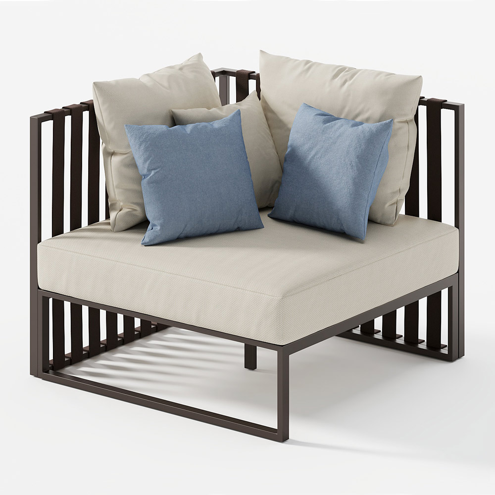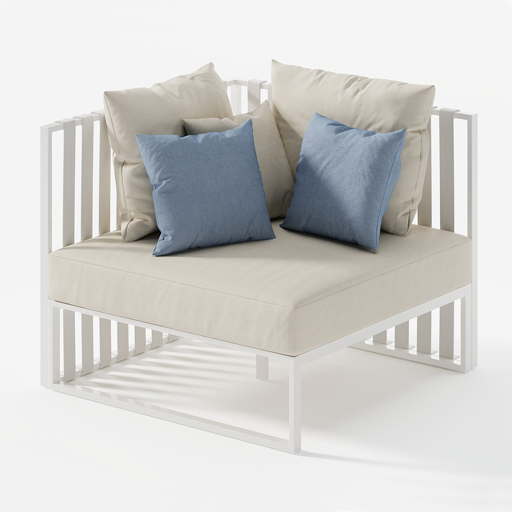 Right corner outdoor armchair in aluminum and straps with Made in Italy padded cushions