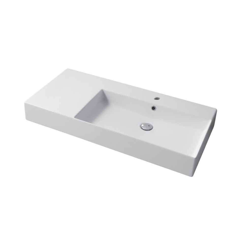 Right single hole countertop or wall-mounted sink in ceramic Leivi