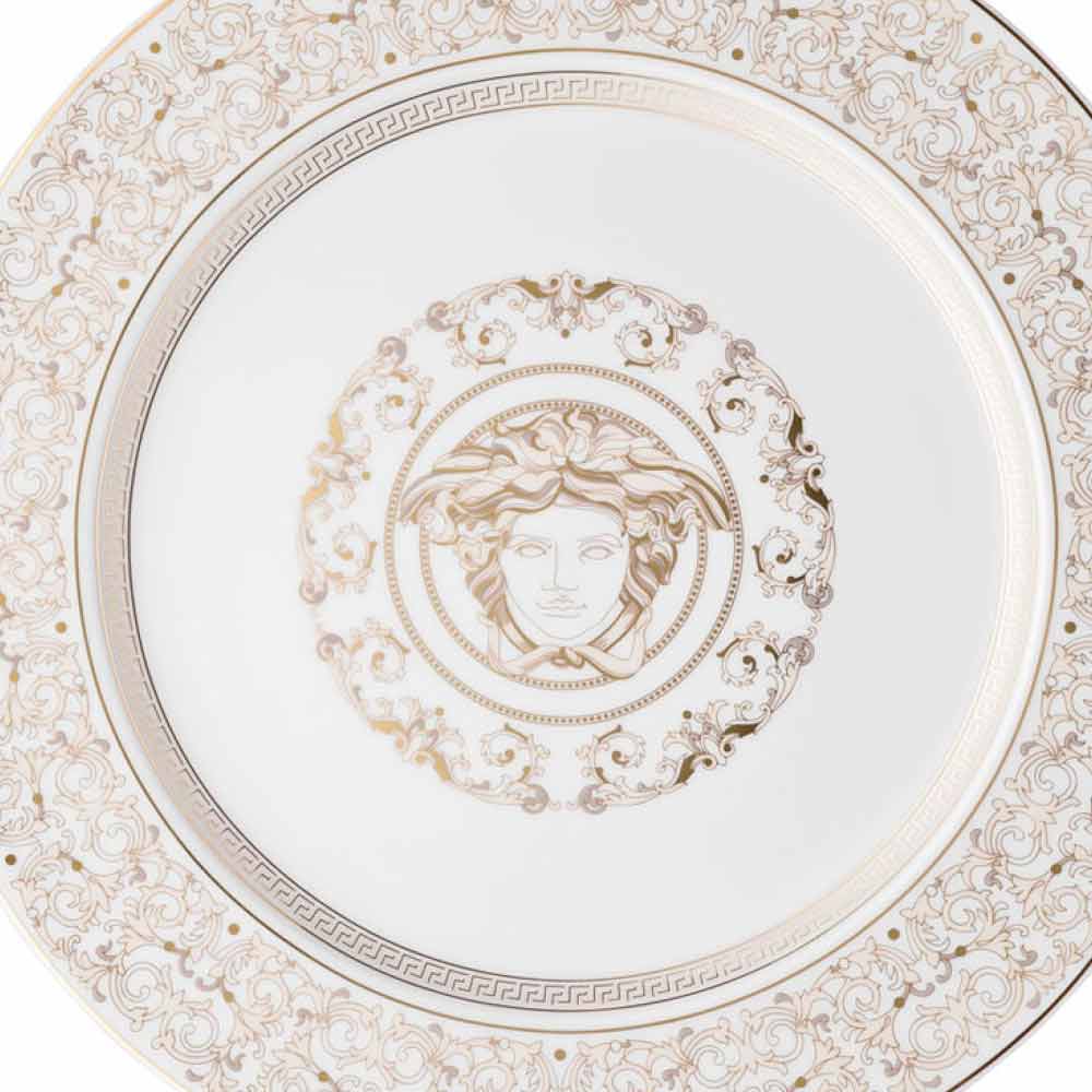 Inspired by the opulence and unique atmosphere of gala dinners, Medusa Gala reinterprets the traditional Versace motifs in design and decoration: the iconic depiction of the Medusa alternates with refined baroque ornaments in a precious gold filigree. An exciting contrasting effect between the whiteness of the porcelain and the pure gold gives life to a perfect mise en place, modern and at the same time unique.