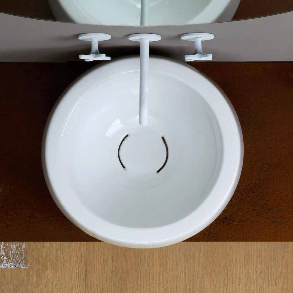 Circular design ceramic countertop washbasin made in Italy Elisa