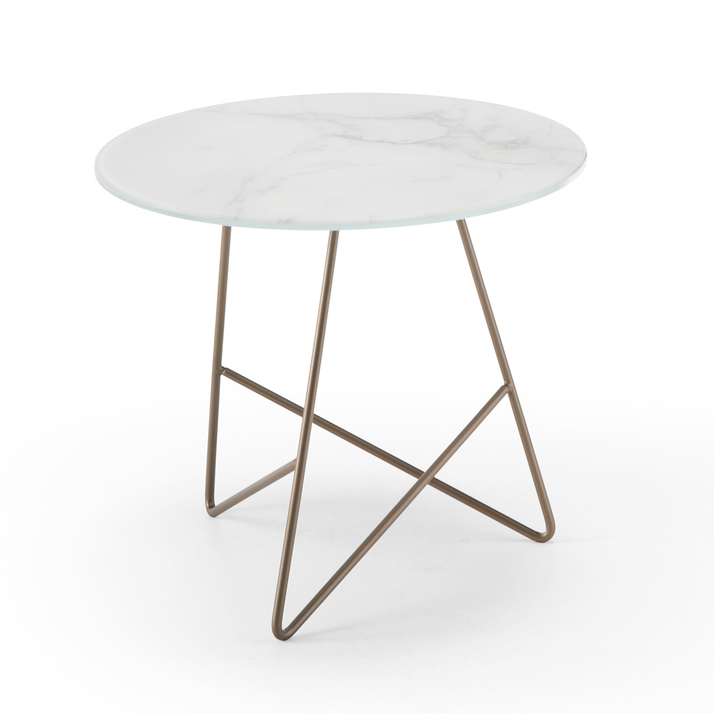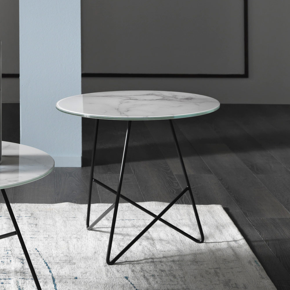 Made with a metal base painted in various RAL colors and a white or black glass-marble base, the coffee table is thus extremely refined and luxurious.