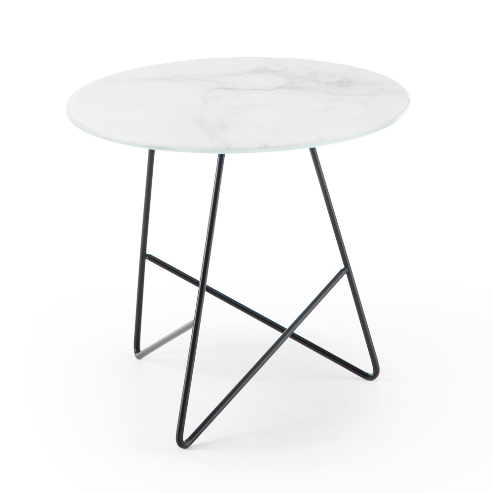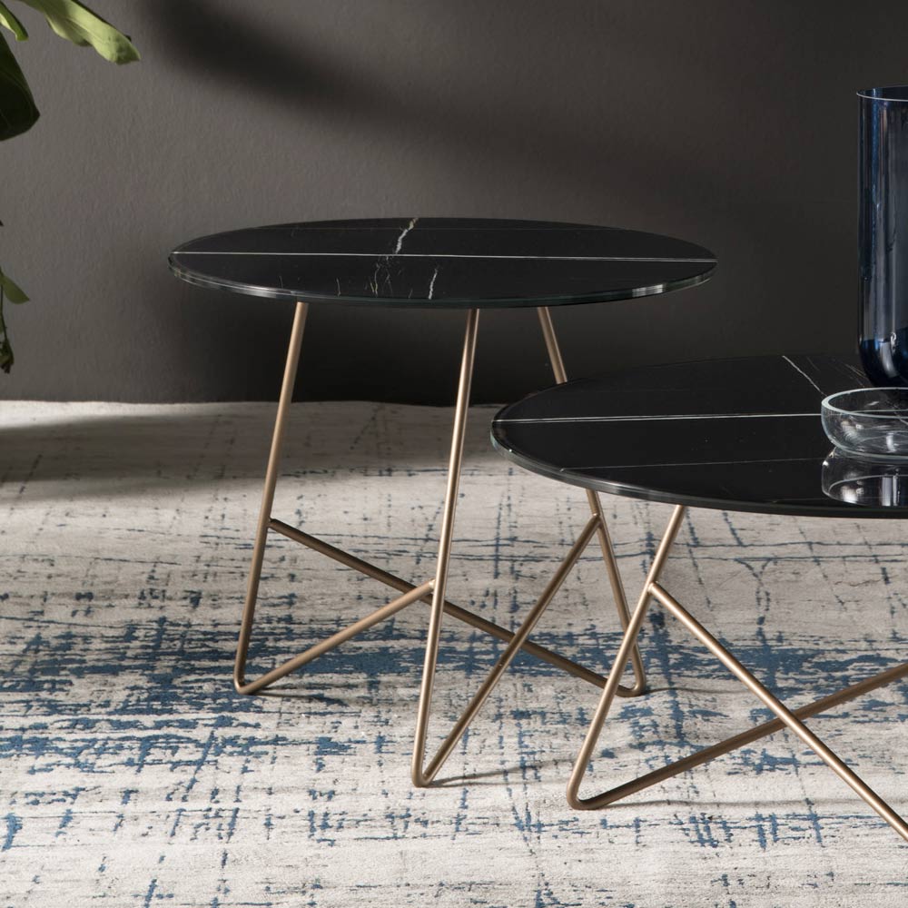 Round Coffee Table in Metal and Luxury Marble Effect Glass - Magali