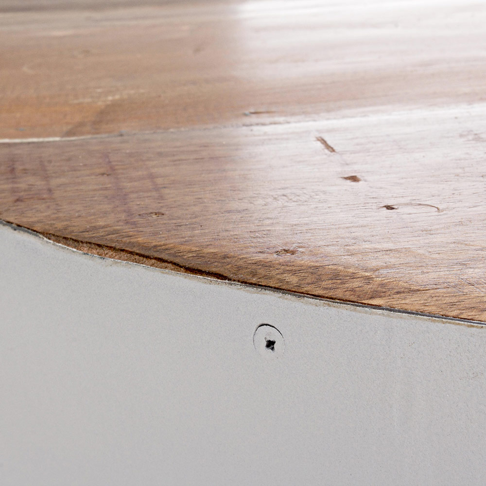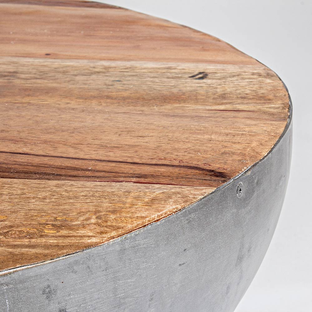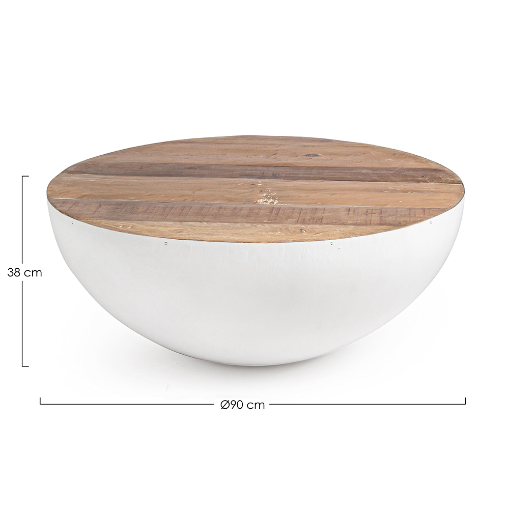 Round coffee table in recycled wood and steel, 2 colors and 2 sizes.
