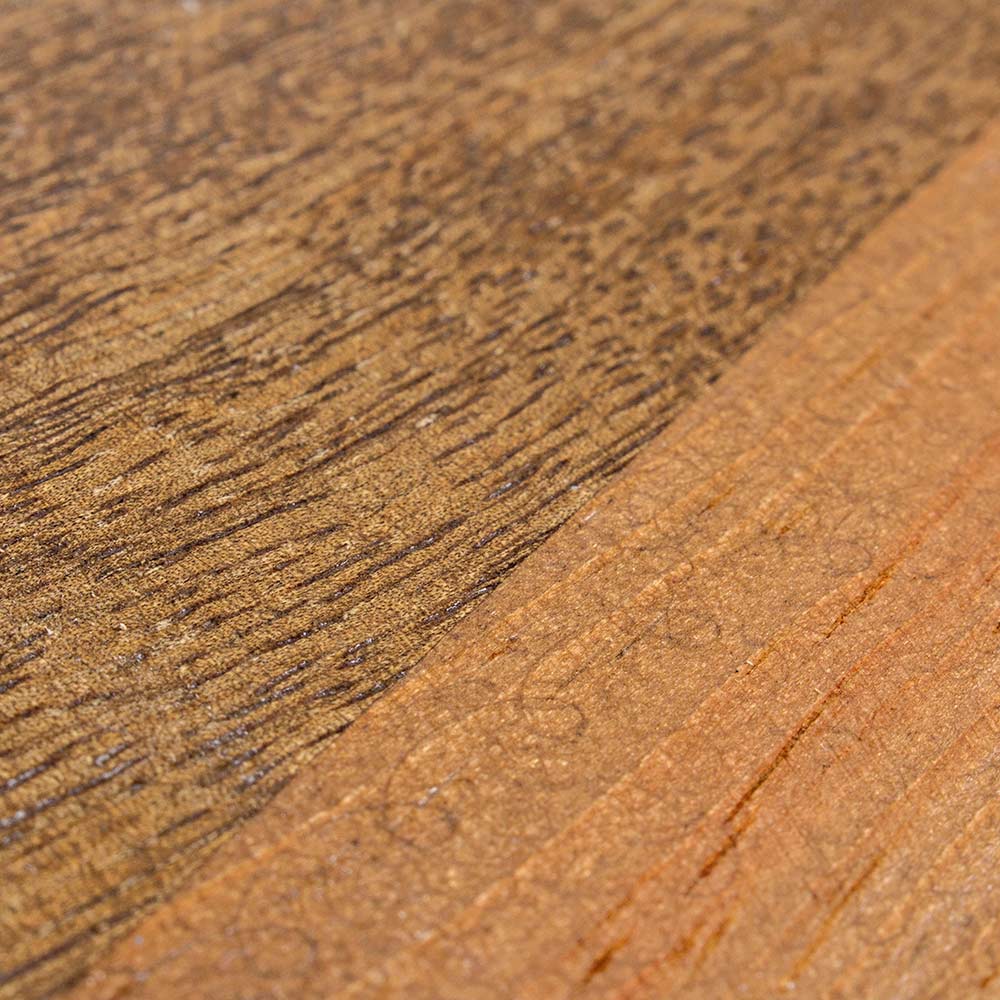In production, recycled wood includes wood scraps to cover the holes originally present in the product.