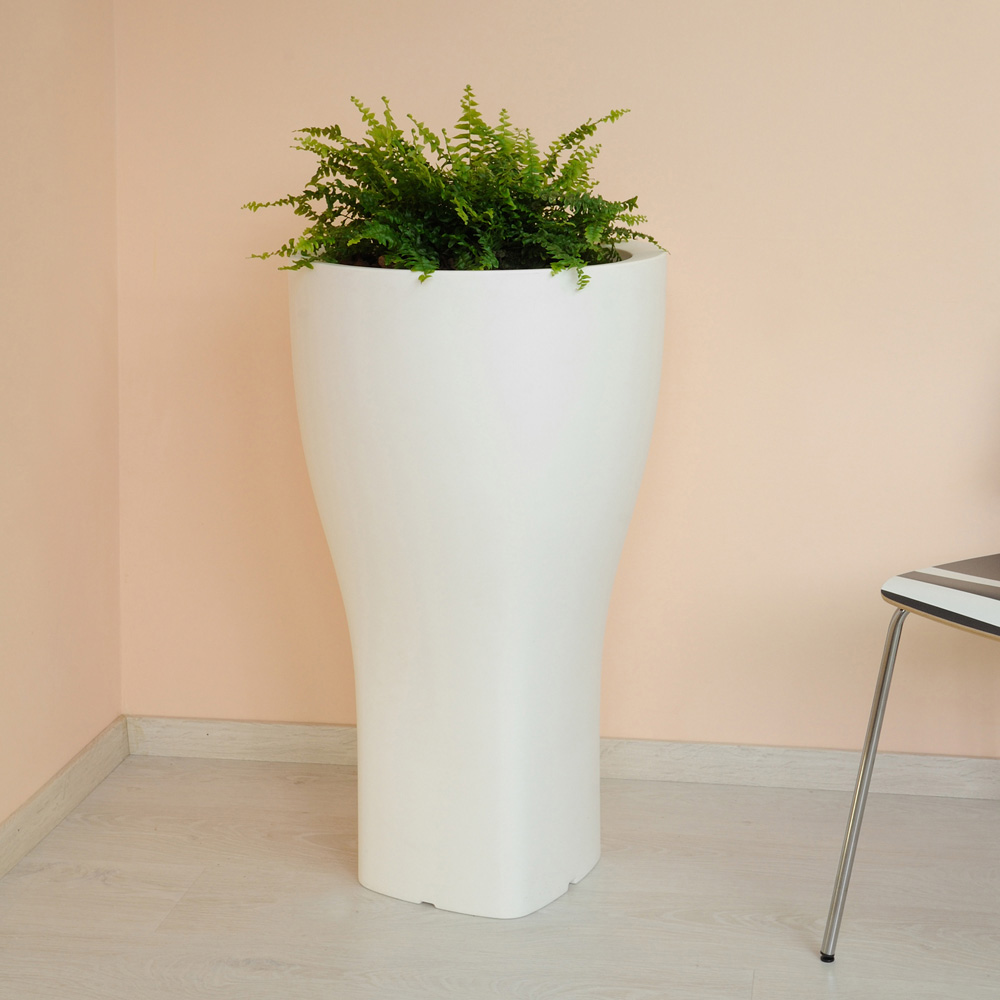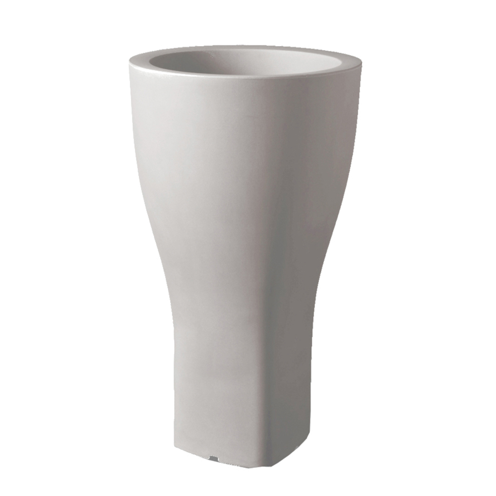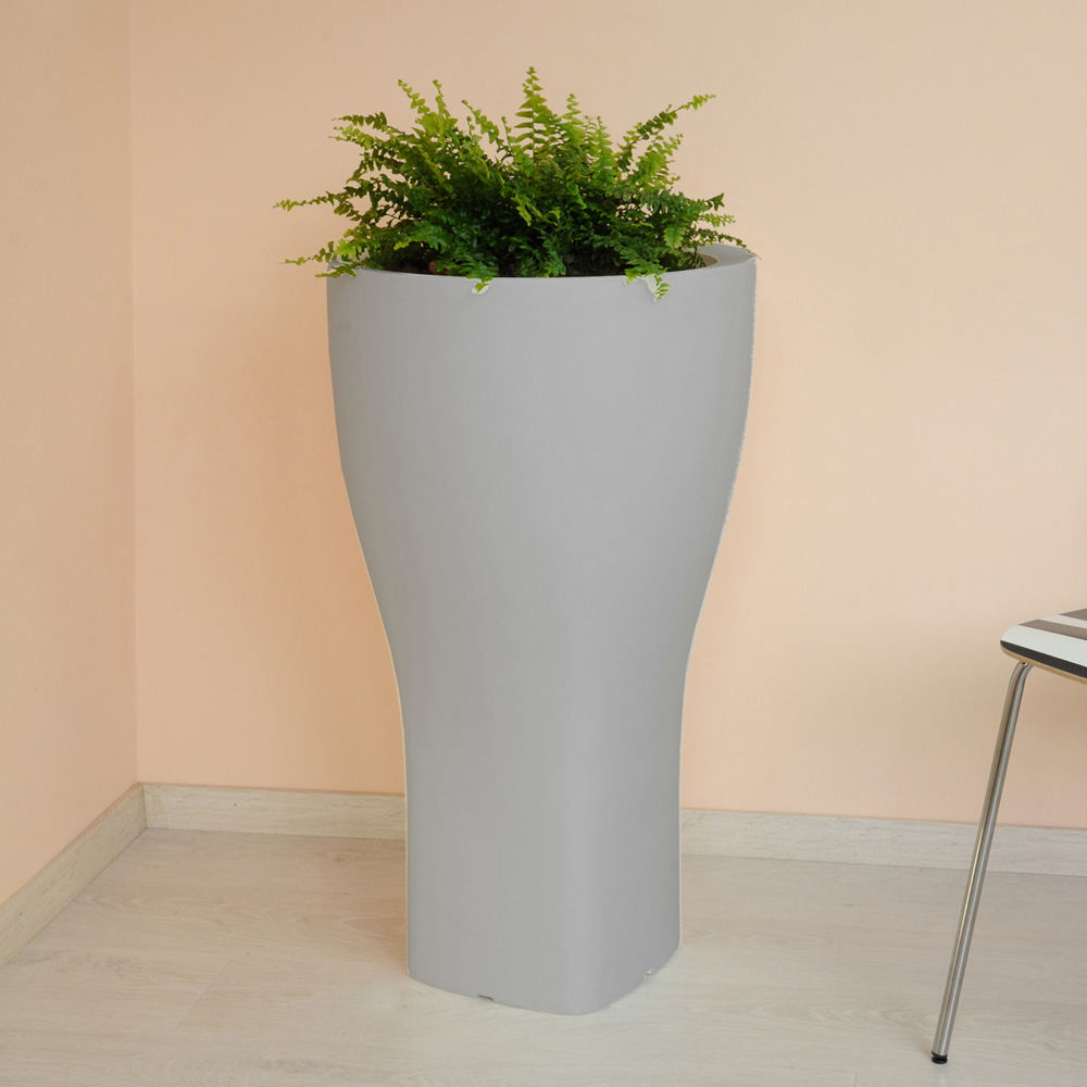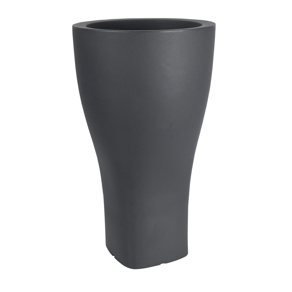 Round garden flower pot in colored polyethylene available in two different sizes.