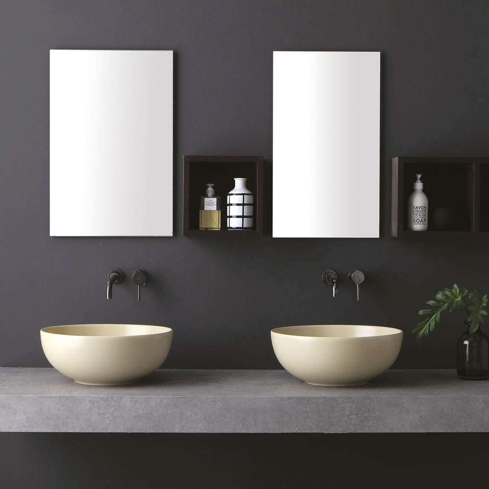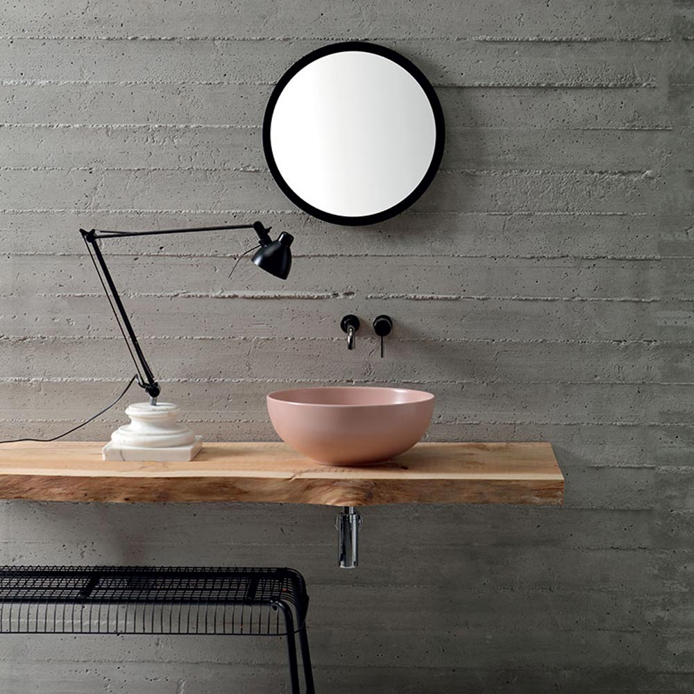 Round countertop washbasin made of colored ceramic with a matt finish through 100% Made in Italy craftsmanship . Simplicity and versatility come together to give life to this wonderful piece of furniture with a minimal and refined style designed to complete any modern bathroom area, bringing with it a touch of personality and elegance .