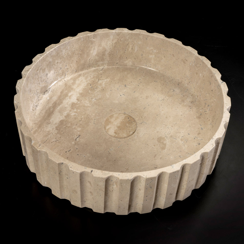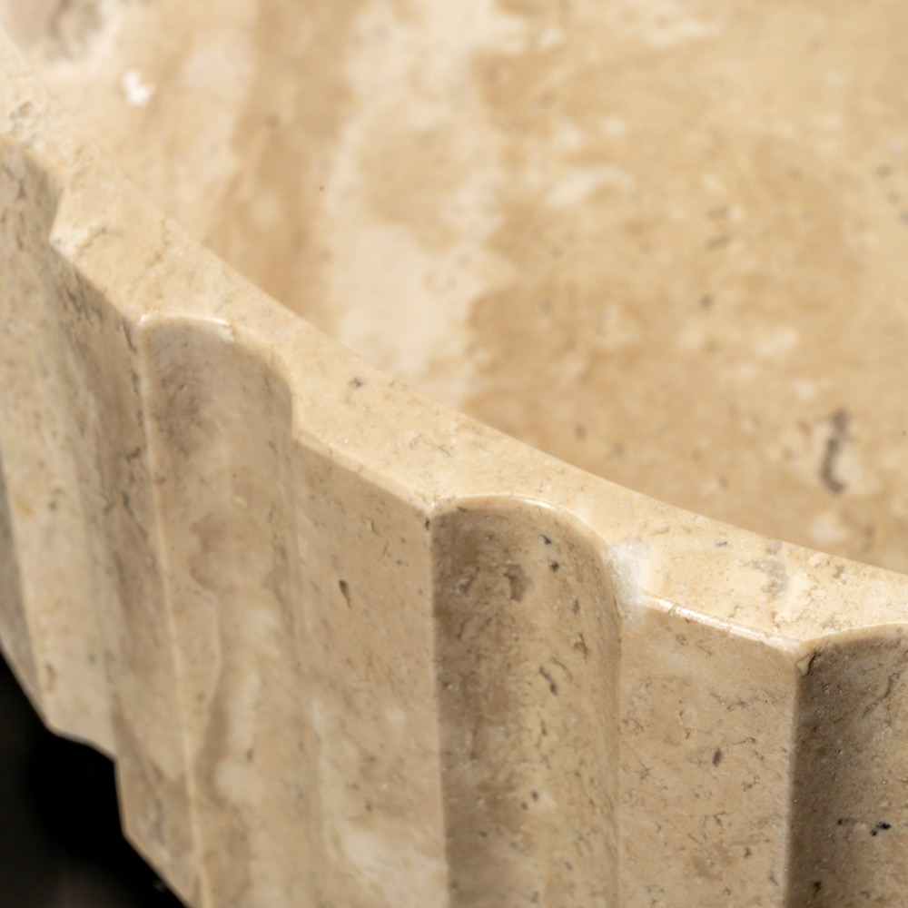 The travertine countertop washbasin combines craftsmanship and a refined luxury aesthetic. Each piece, carved from a single block of travertine marble, is unique thanks to its distinctive veins and color variations that make it exclusive. The click clack waste , made of the same marble, not only completes the design but also ensures impeccable functionality. This sink is an elegant choice for those looking for a valuable piece of furniture that can transform a bathroom into a luxury space.