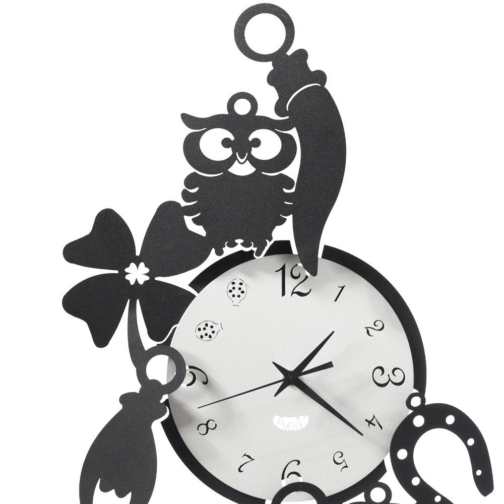 Round design iron wall clock with lucky charms in 3 finishes made in Italy.