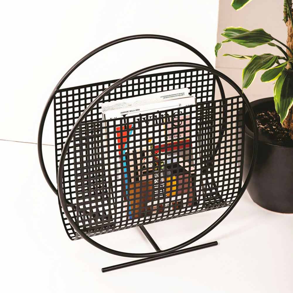 Geometric and modern design floor magazine rack made of Made in Italy steel.