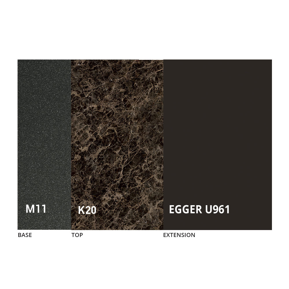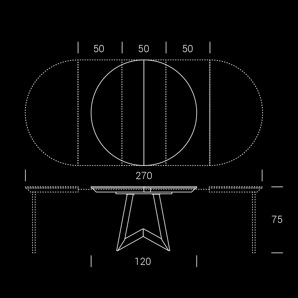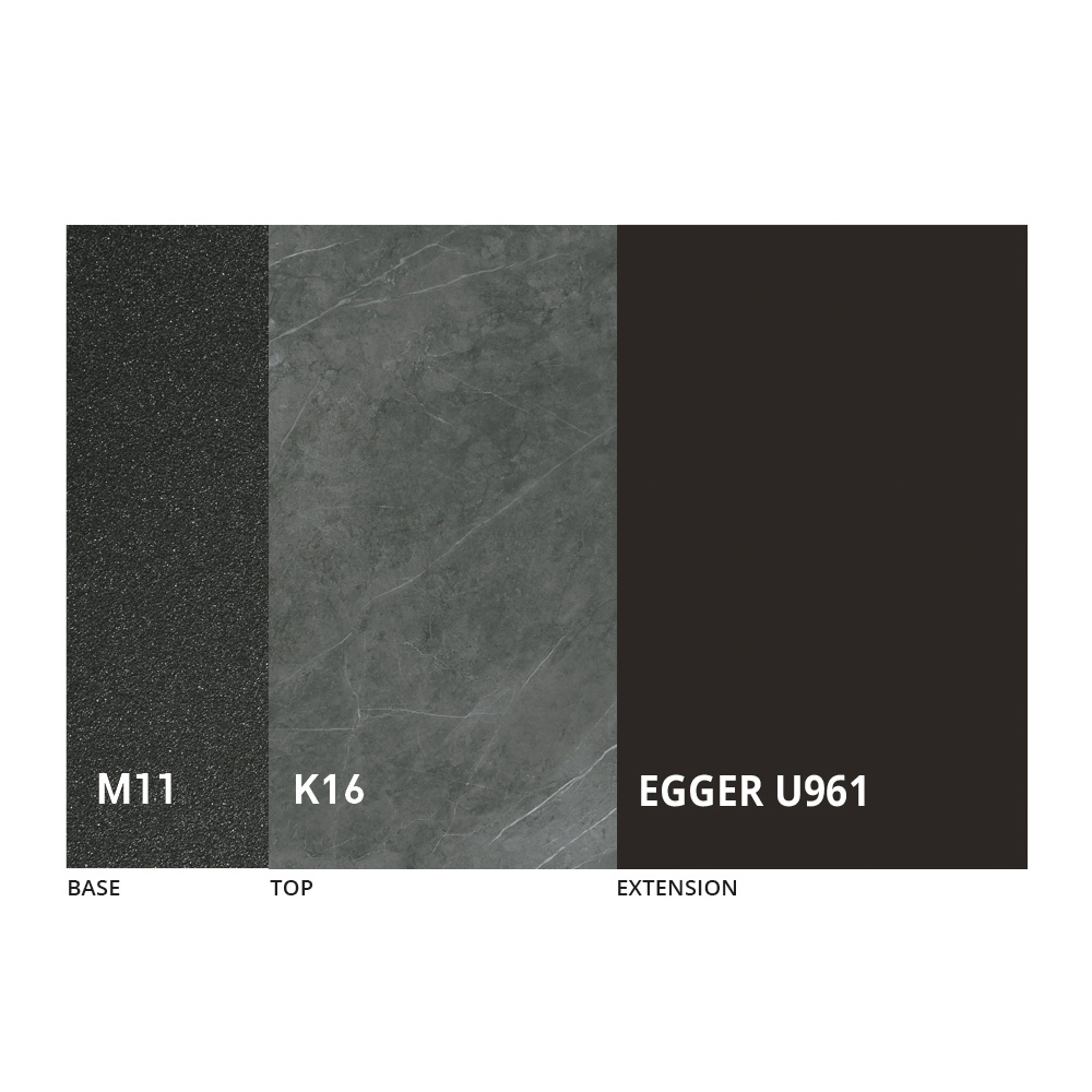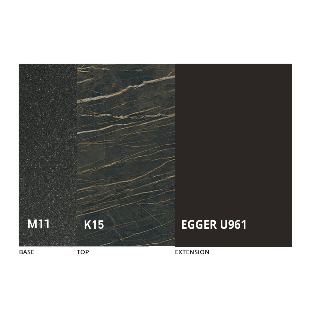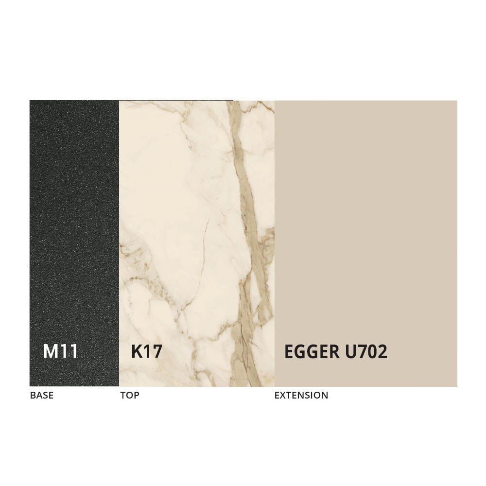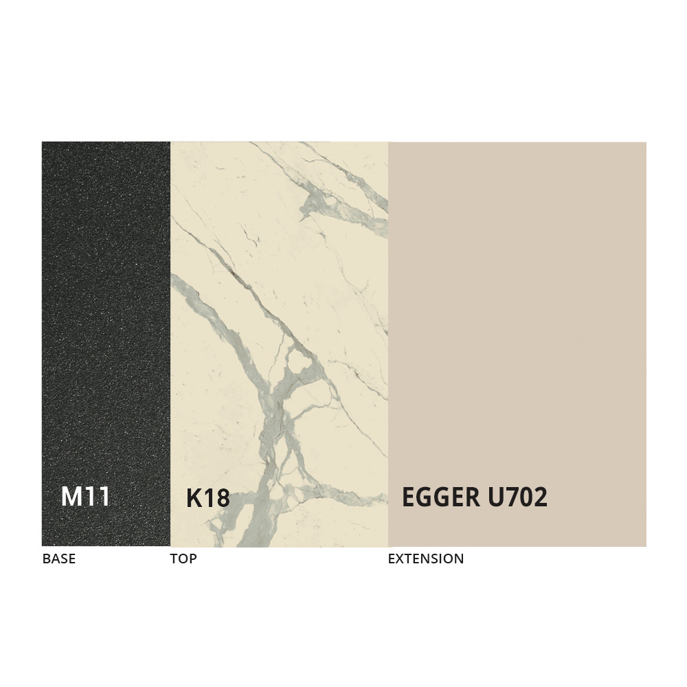 ceramic top which is divided into two half-planes to accommodate the 3 external extensions, thus increasing the surface and the opportunities for conviviality.