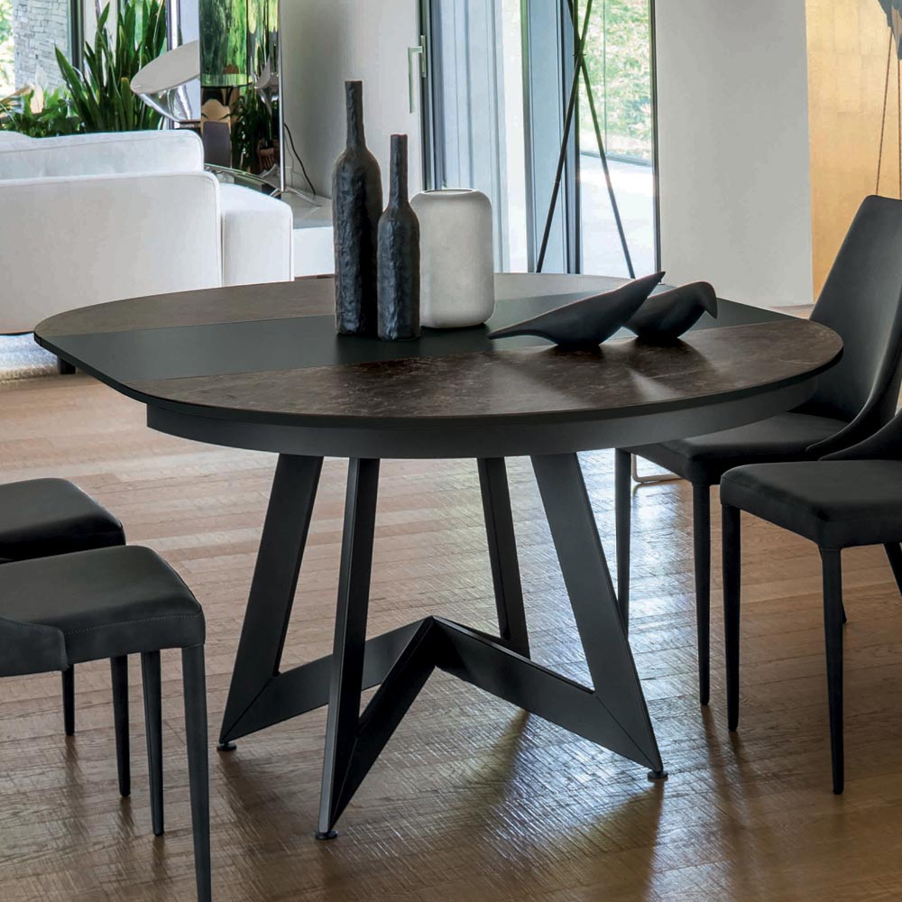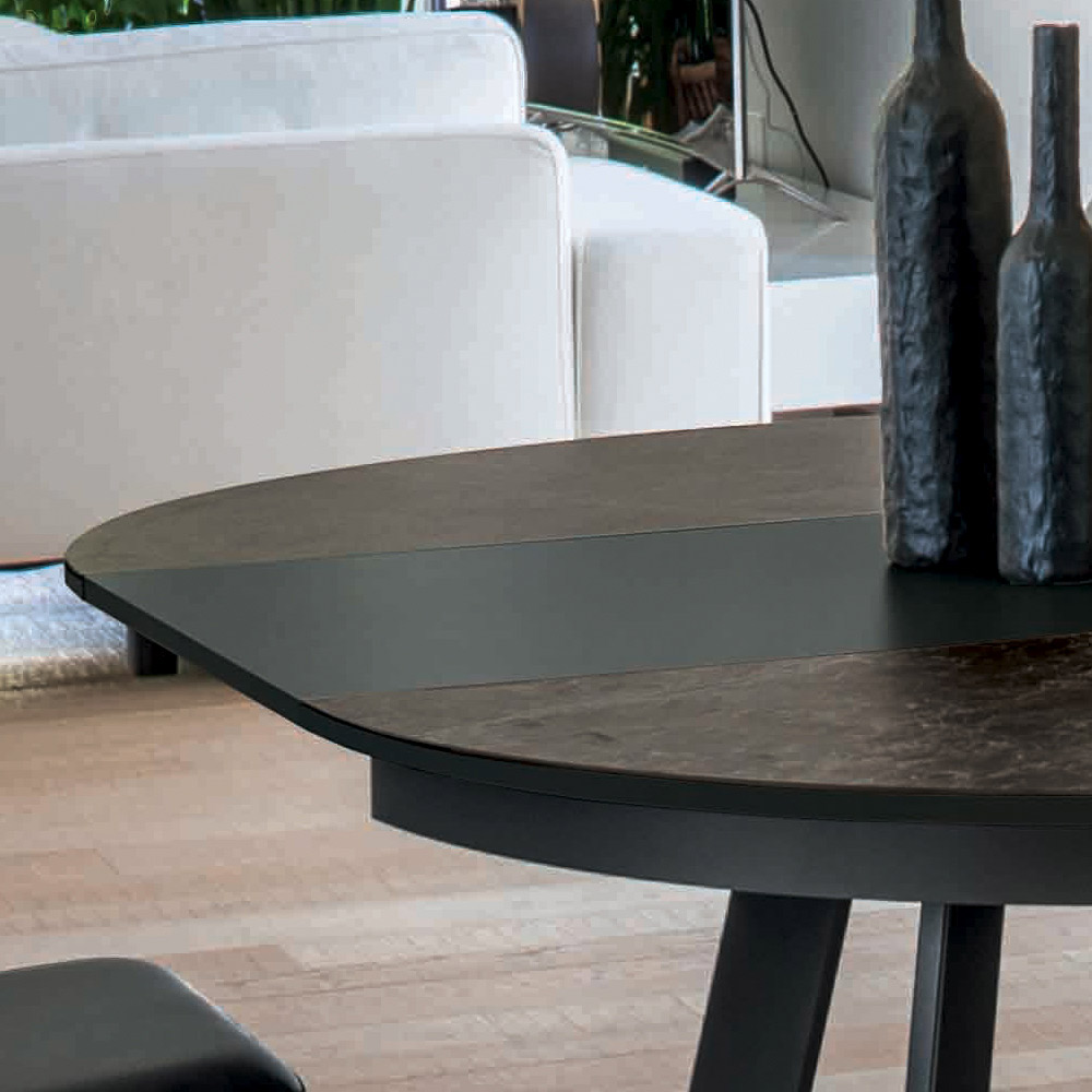 Round extendable dining table in ceramic and painted metal Made in Italy.