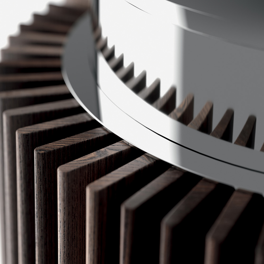 of wooden and metal slats . The strong point of its aesthetics is the architectural base characterized by slats that rest on a