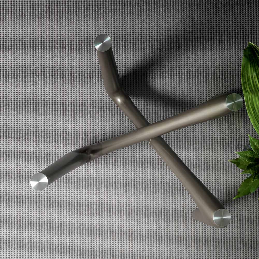 Its peculiarity is given by its dynamic and innovative image both in terms of aesthetics and functionality: the structure intertwines to lightly support the top, giving it a sculptural and refined appearance.