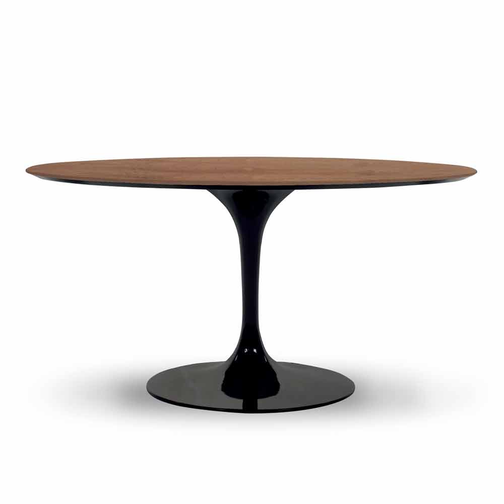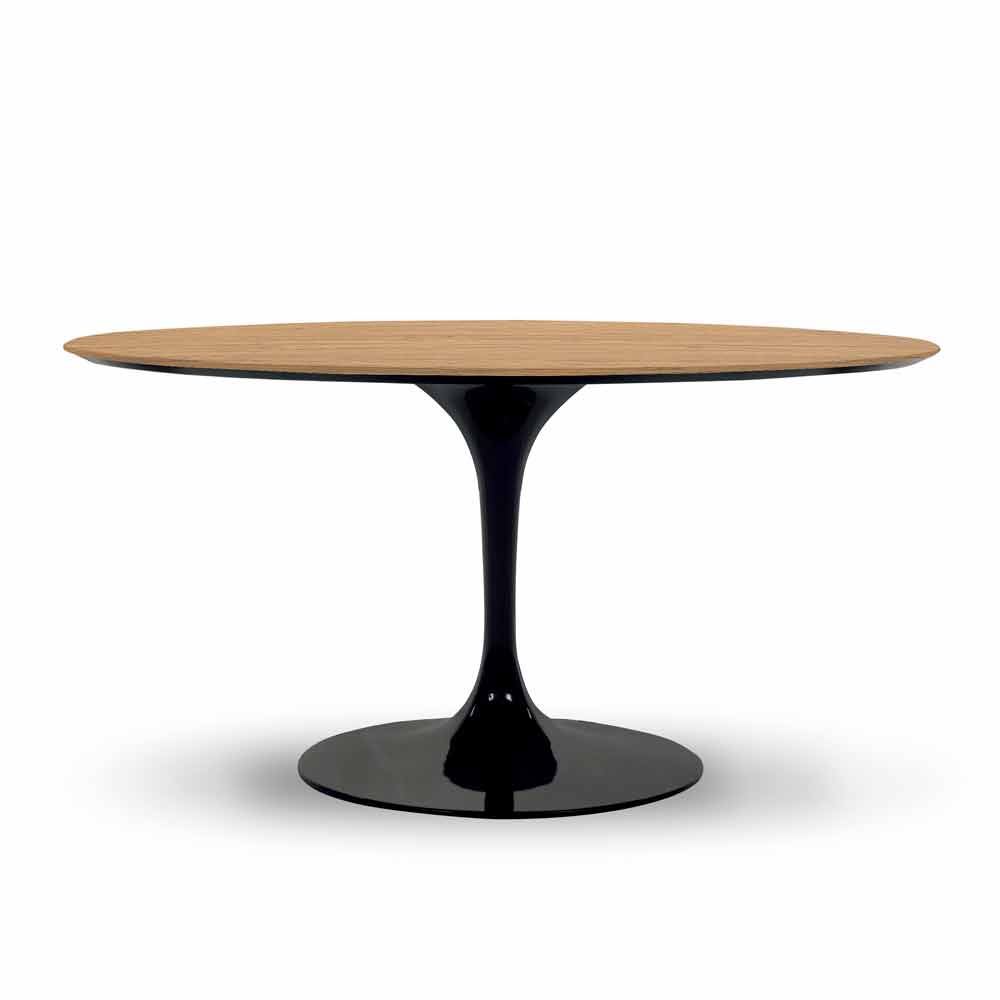 Luxury dining table with round top made in Italy of wood and aluminium.