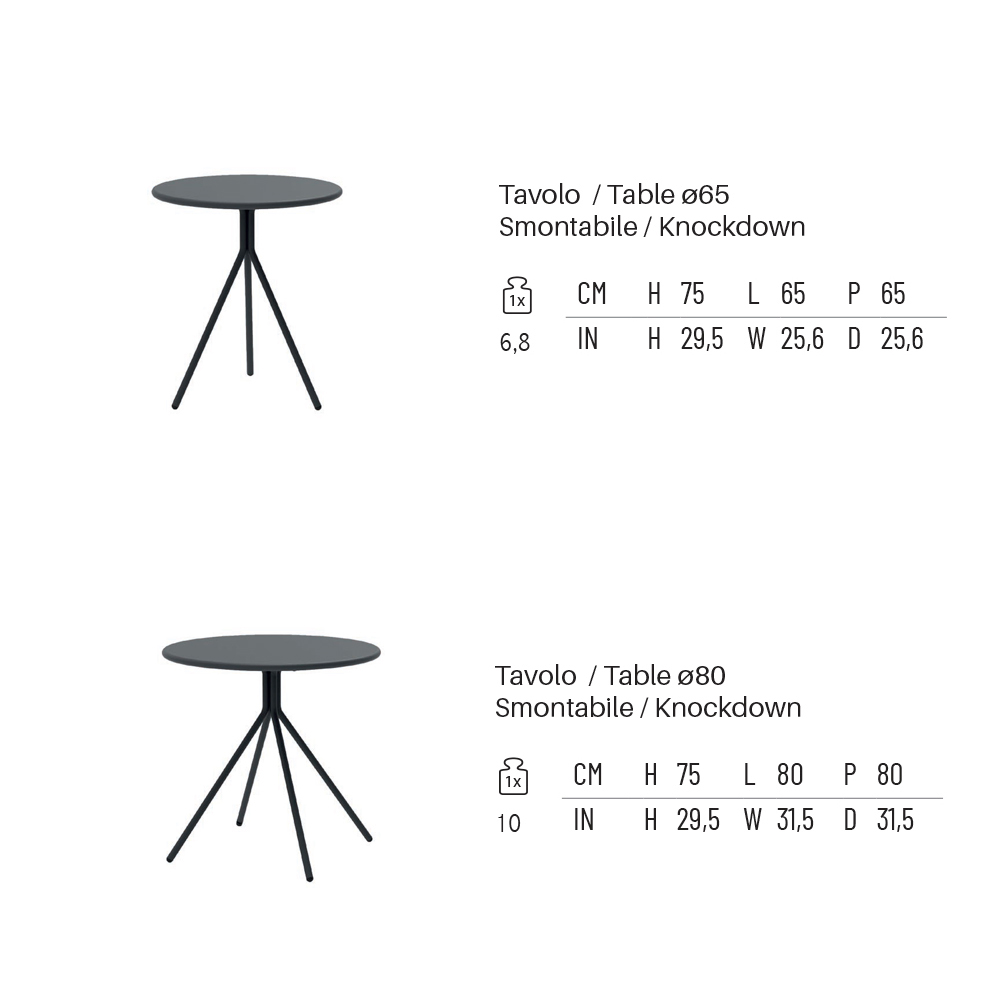 Use and maintenance : during the winter season it is advisable to store the product in closed and dry places, to avoid humidity creating condensation. If the products are located near a seaside area it is advisable to clean the surfaces every two/three months with delicate detergents. It is also advisable not to leave waterproof synthetic fabrics on the table tops for a long time because they could ruin the paintwork.