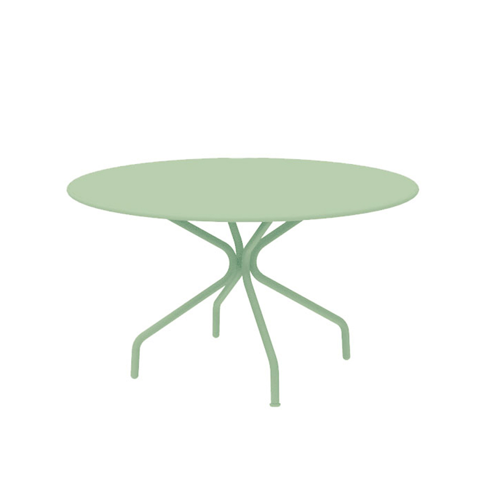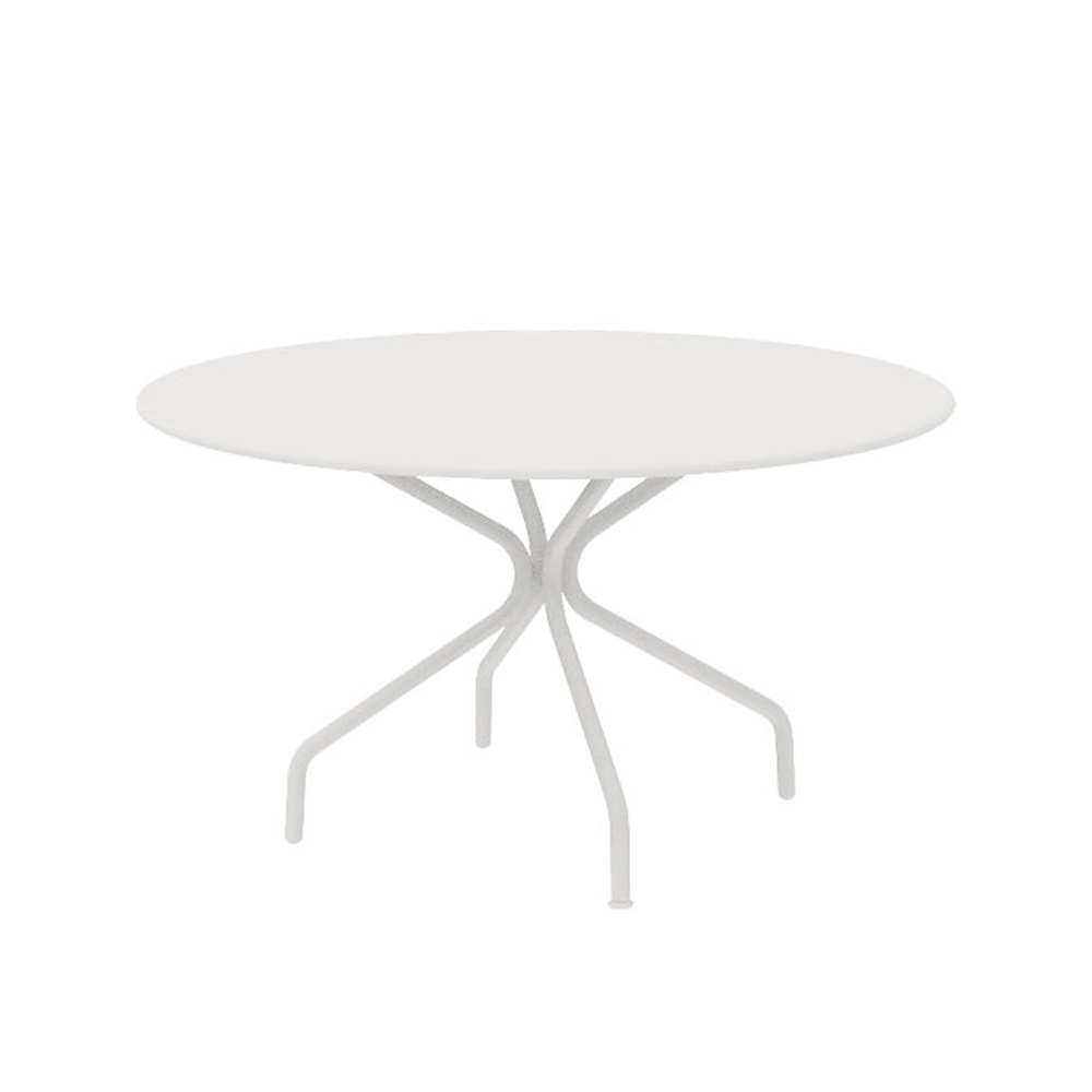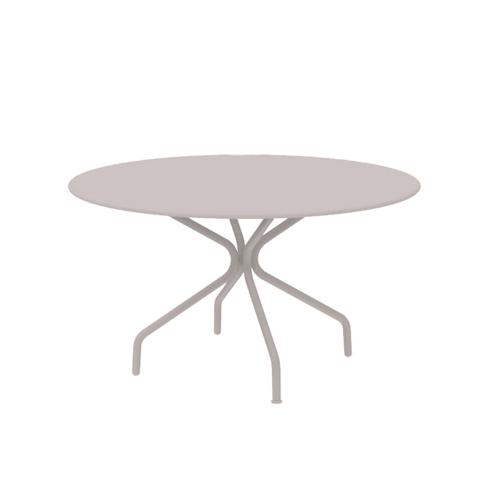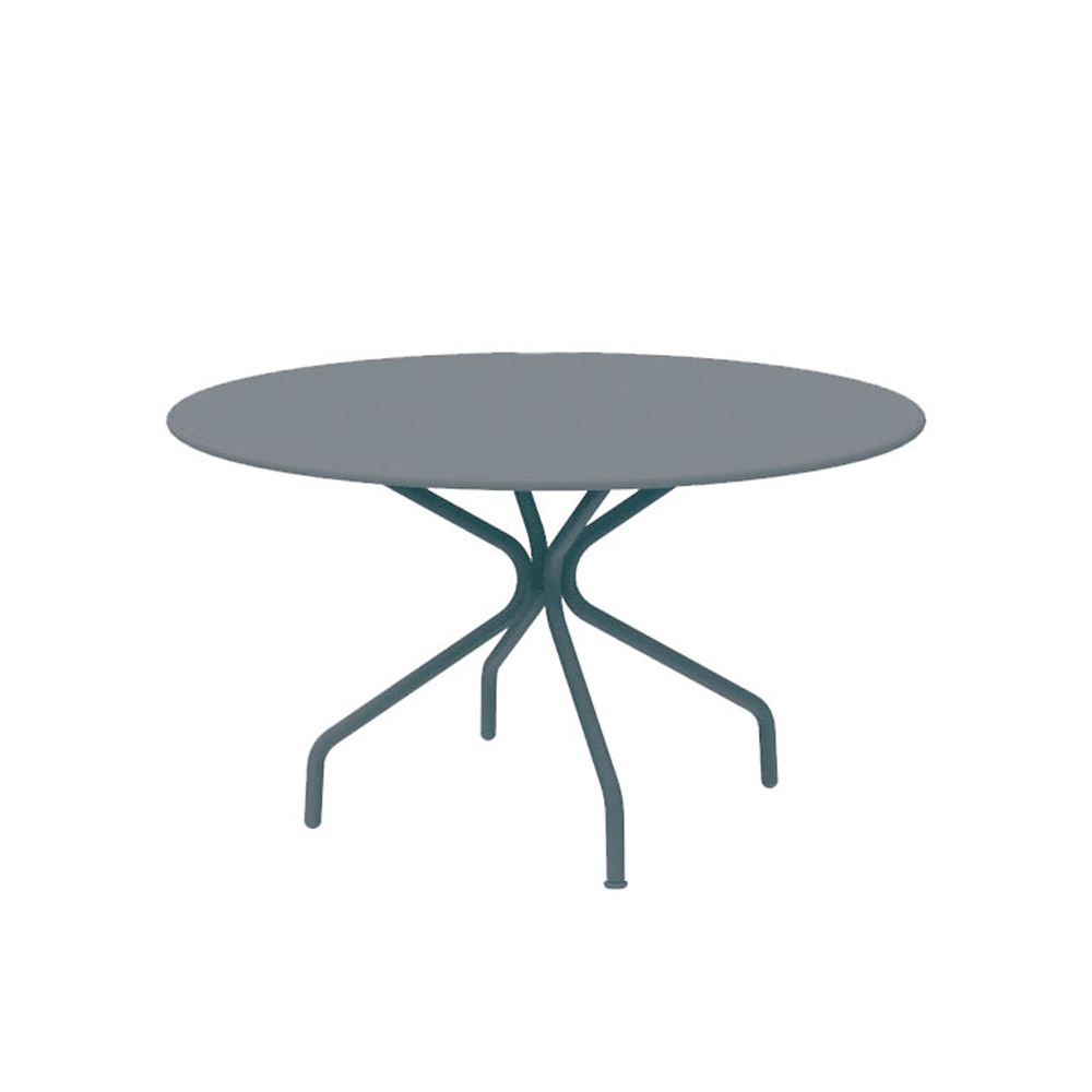 This garden table is designed to be a striking but extremely durable piece of furniture due to the quality of its materials because it is a product made 100% in Italy . Its structure is made of steel strengthened by a galvanizing process to make this product resistant to corrosive and atmospheric agents . Its round shape gives this table a contemporary and refined design , perfect for capturing attention.
