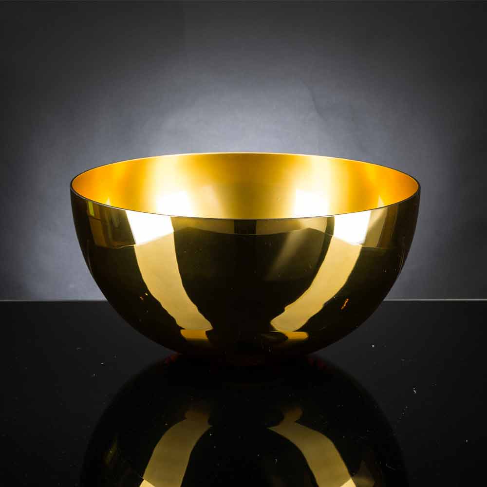 Round shaped ornamental vase made in Italy in blown glass with a glossy 24k gold finish, handcrafted by master glassmakers who have been experts in the sector for generations. Its peculiarity is represented by the artisanal production which increases its value and value to give life to an exclusive and high quality result . The particular color chosen makes it an extremely elegant complement, capable of enriching the surrounding furnishings with personality. An ideal design for the most varied environments, from home furnishings to that of hotels, restaurants, contract areas, spas but also as a setting for events and weddings.