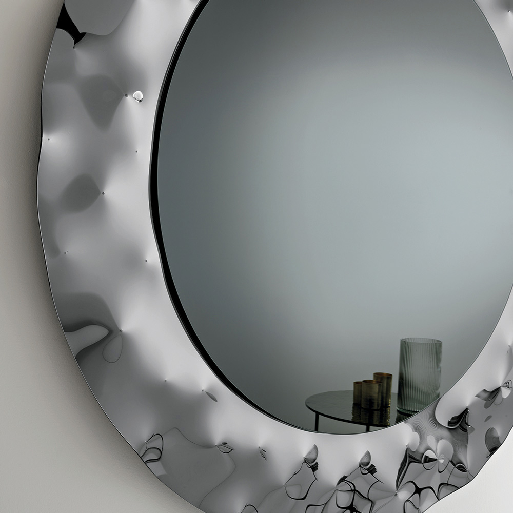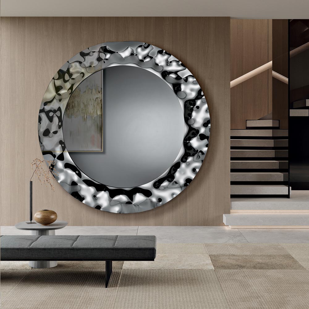 Round Mirror with Wavy Glass Frame Made in Italy - Adelma