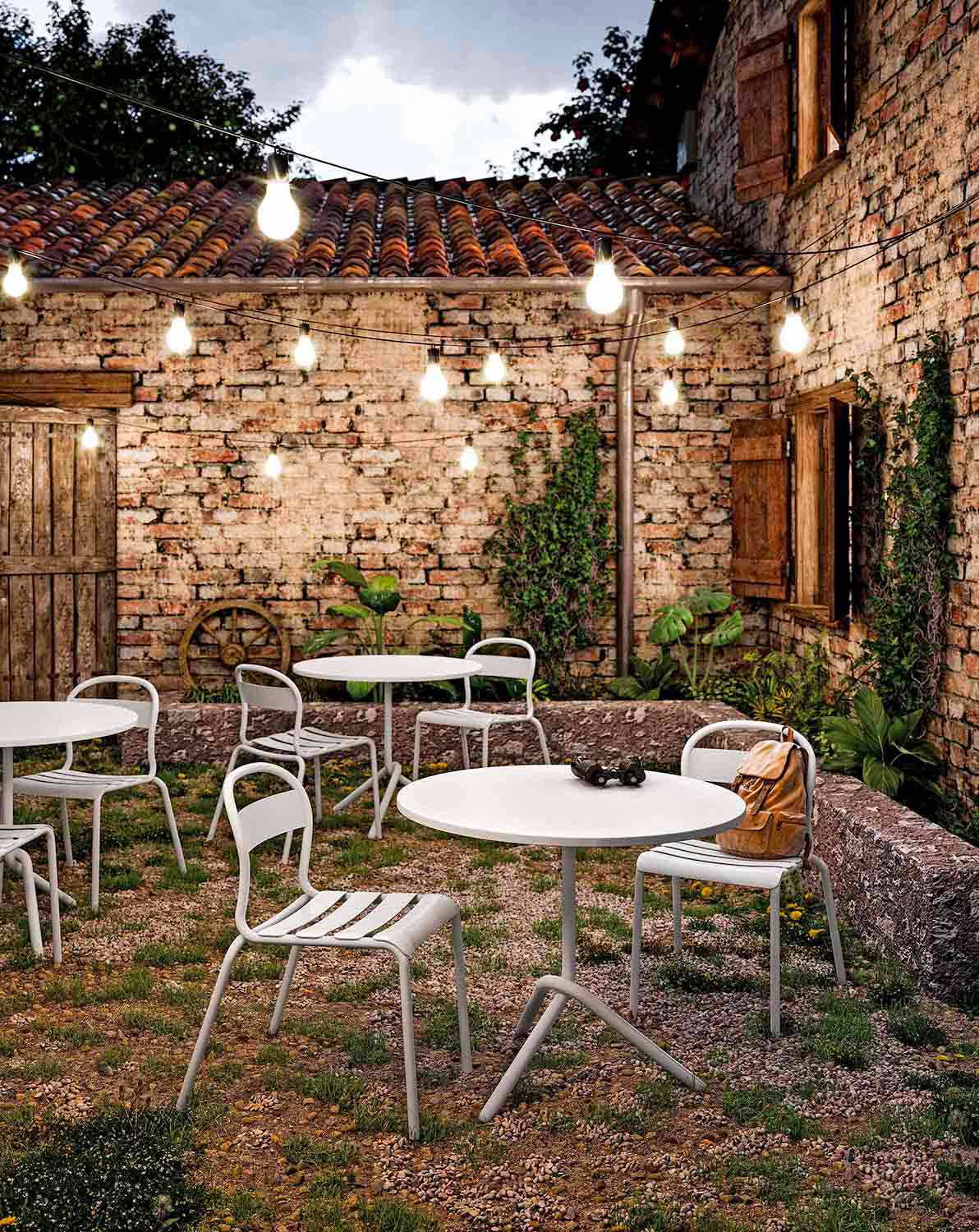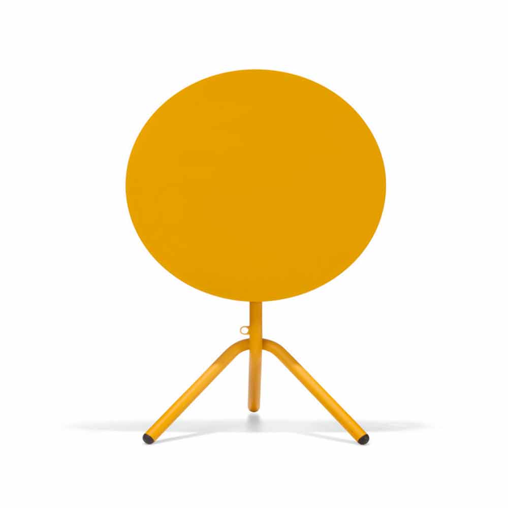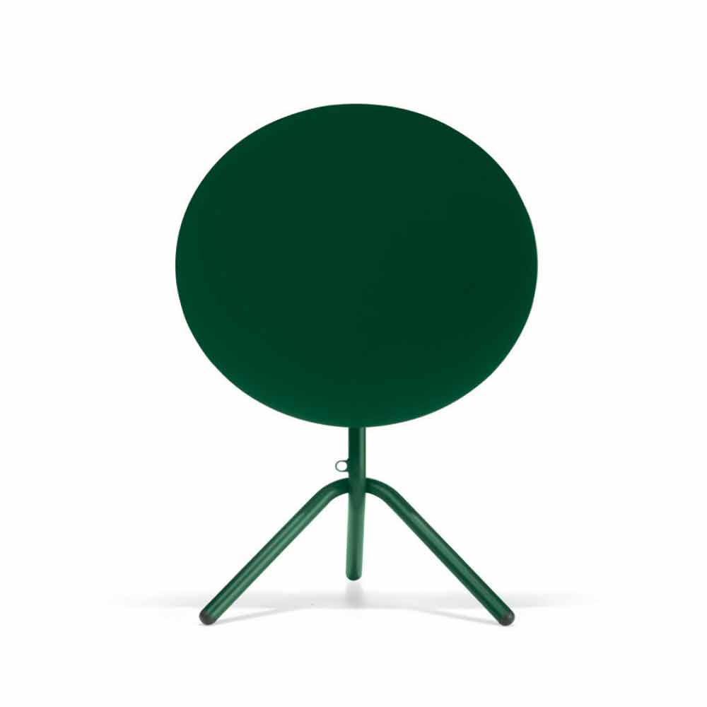 Round garden table with an innovative and modern design made with a tubular metal structure that stands out thanks to the particularity of the intertwined legs that make it robust and solid at the same time. The top is instead made of sheet metal available in 6 color variants and in two different diameters, thus allowing it to adapt to any environment giving color and liveliness. It is an article that can be conveniently folded down and stacked horizontally, thus making it possible to optimize spaces in the best way.