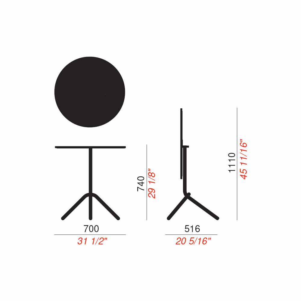 Round outdoor table in metal and stackable and foldable sheet metal Made in Italy.