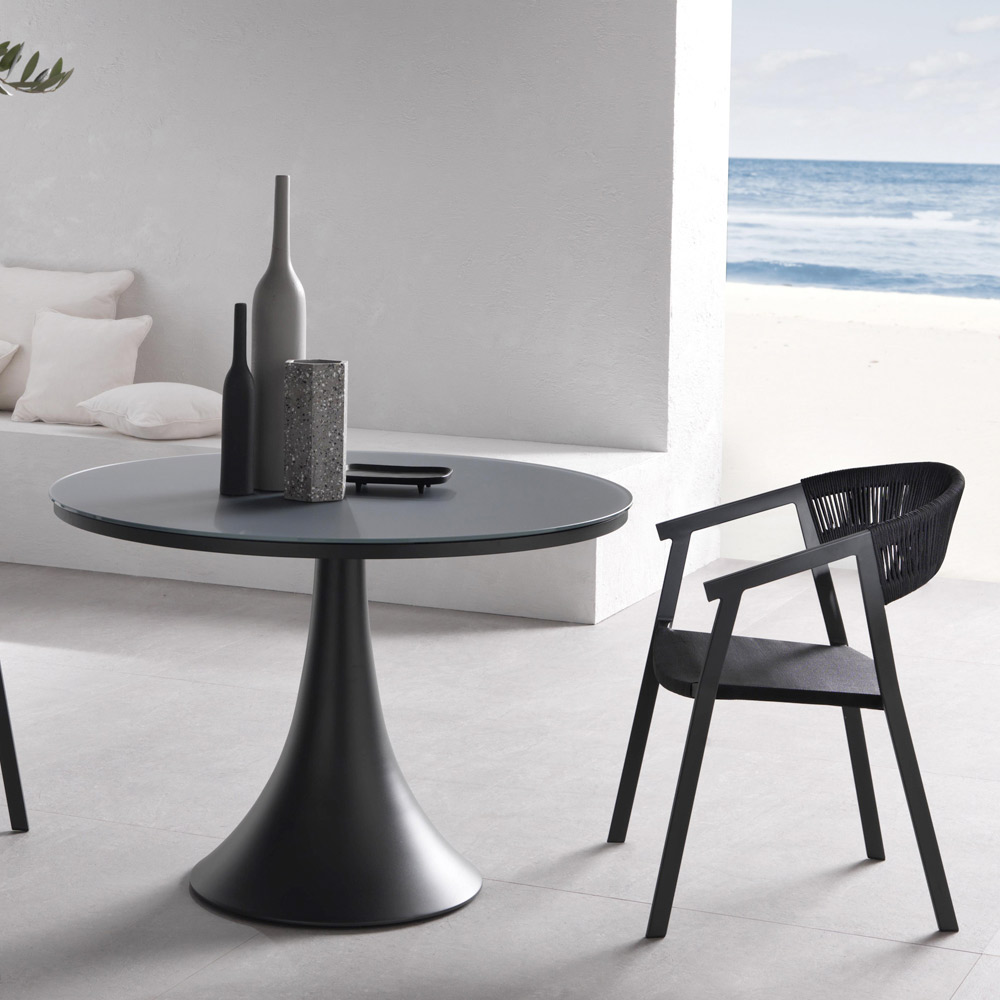 Round Garden Table with Epoxy Powder Coated Aluminum Structure and Back Painted Glass Top