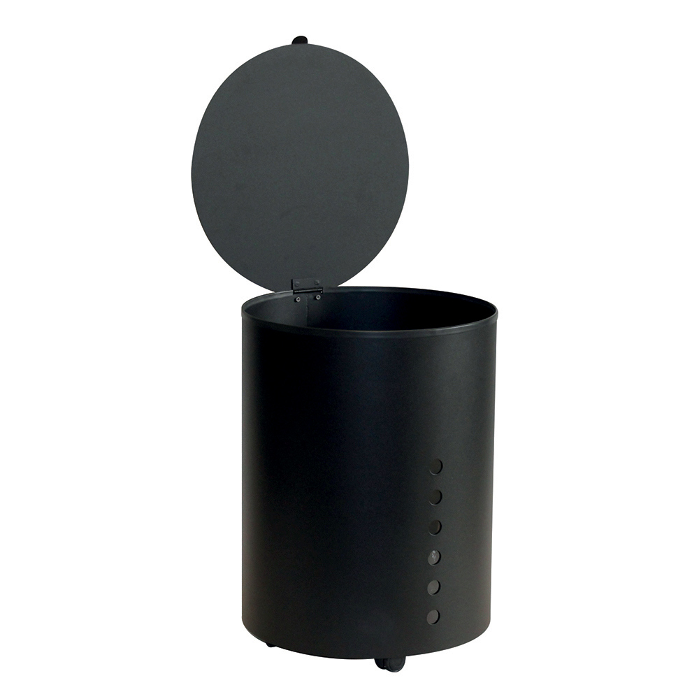 This pellet holder was designed with both aesthetics and functionality in mind. Its cylindrical shape with a black finish adapts to environments with both a modern and traditional design. The upper cover allows you to protect the contents from humidity and dirt, preserving the quality of the pellets.