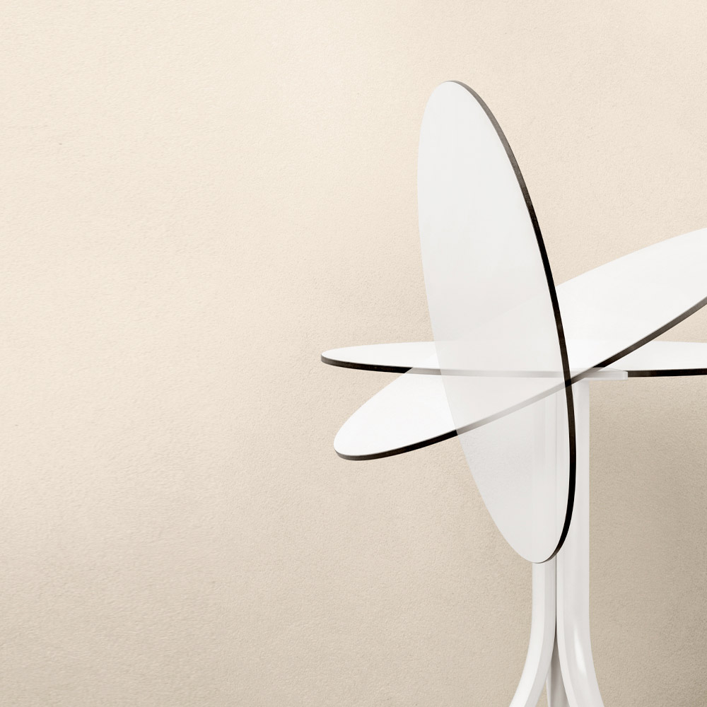epoxy powder coated aluminum, combined with the round top in 10 mm thick HPL