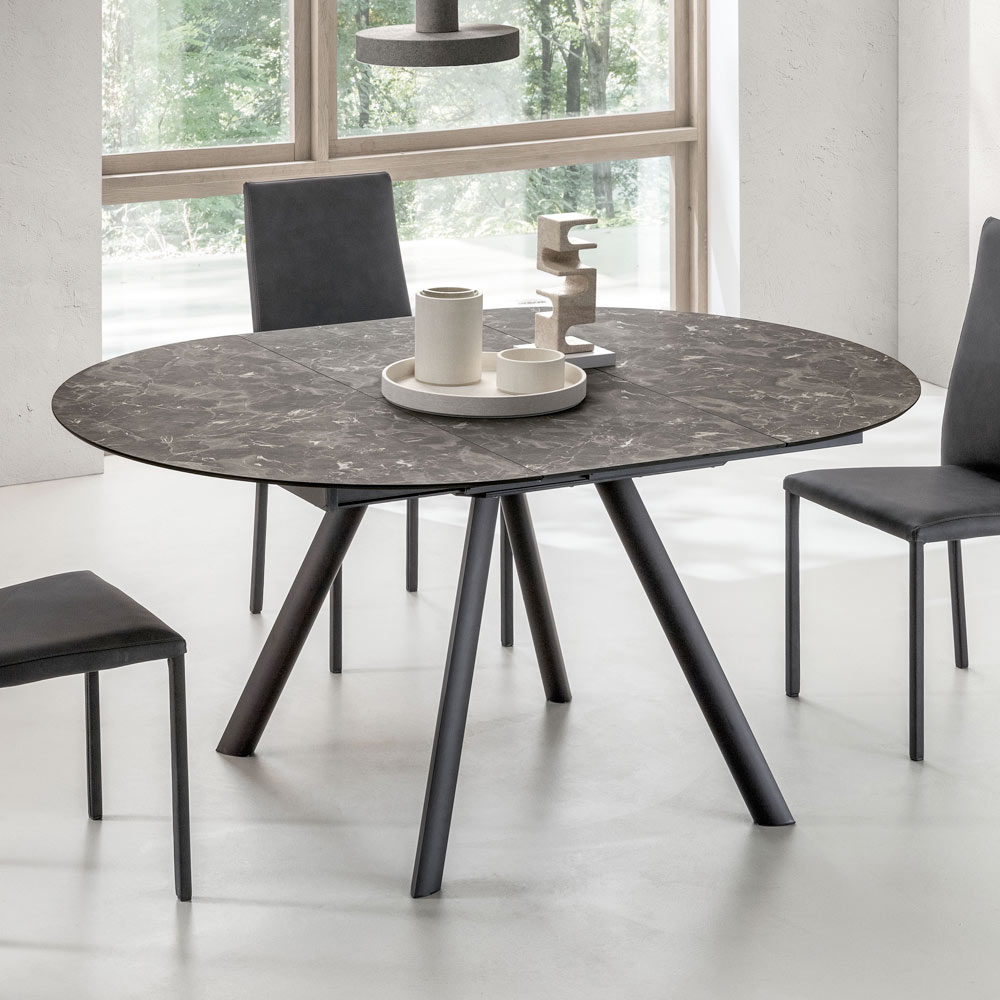 Compact, elegant and transformable: this extendable table in HPL and metal is designed for those who love contemporary design , without sacrificing functionality and resistance .