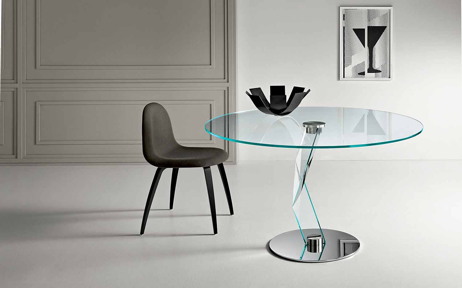 central leg in extra-clear glass (30 mm thick) resting on a