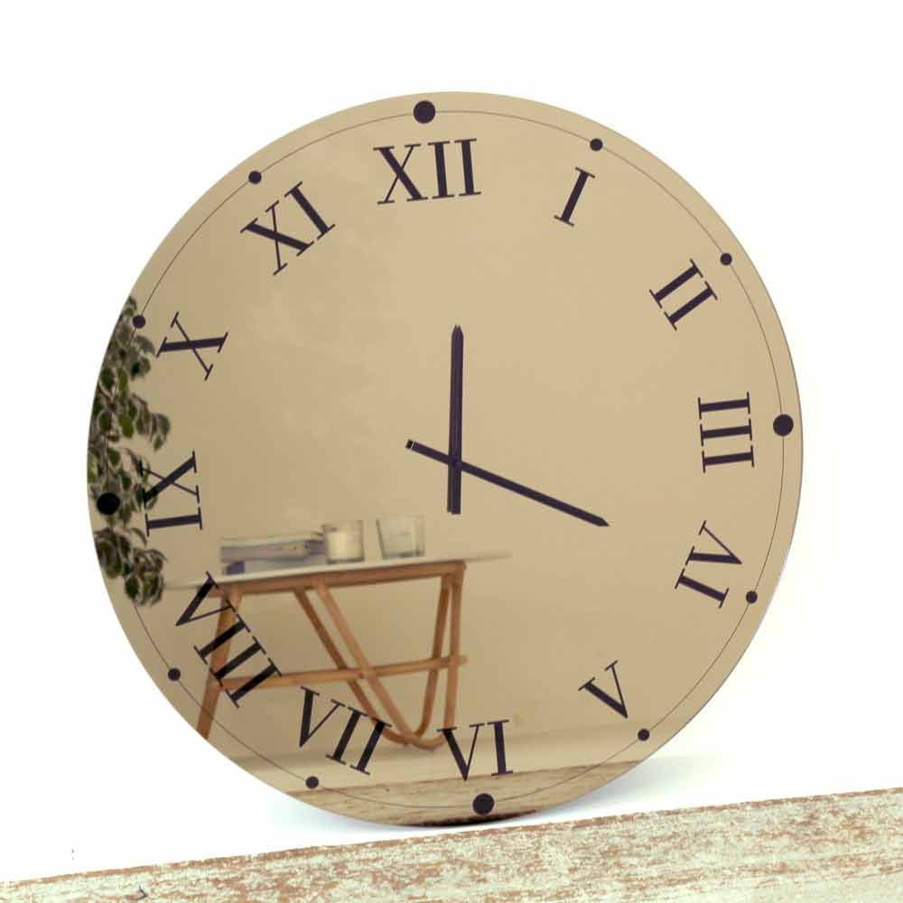 The use of the mirrored finish makes this furnishing accessory the perfect fusion between a mirror and a real clock, performing an extremely useful function and at the same time acting as a wonderful light point, helping to optically enlarge the spaces.