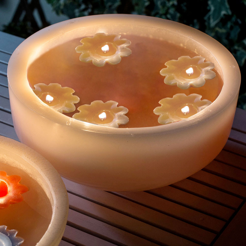 Utina is a round bathtub made entirely of light ivory wax including 8 floating flower candles available in ivory or in the colored variant, thus allowing you to illuminate evenings with friends in a fun and elegant way at the same time. This lantern is designed and manufactured by professional Italian artisans in the sector since 1905 who use only carefully selected and certified raw materials to ensure a high quality and entirely Made in Italy final product .