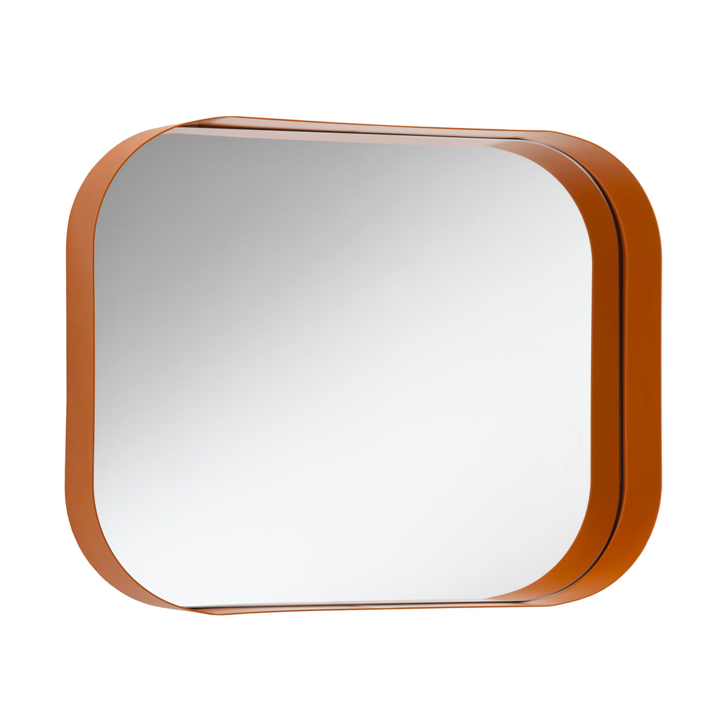 This large and nice wall mirror with a rectangular design with rounded corners is characterized by the metal edge that frames the mirror and acts as a practical and colorful 12.50 cm shelf.