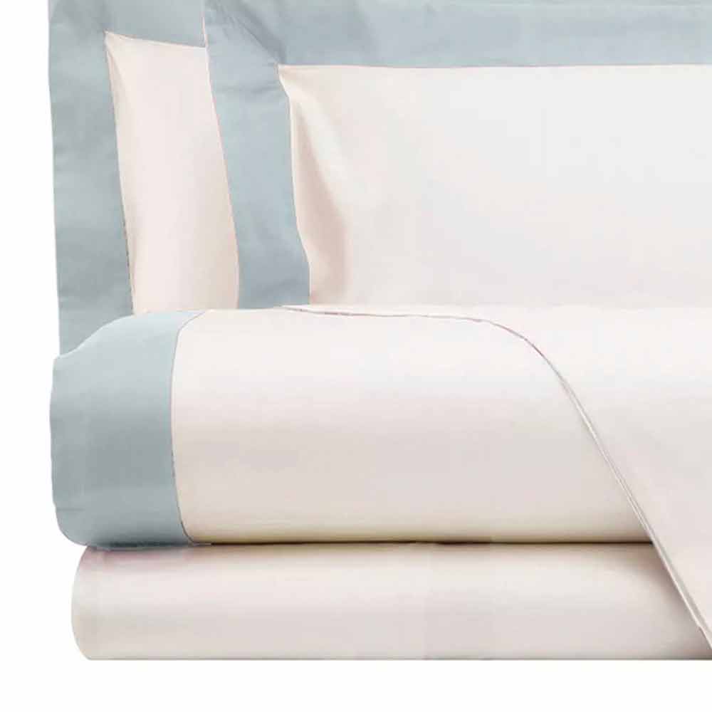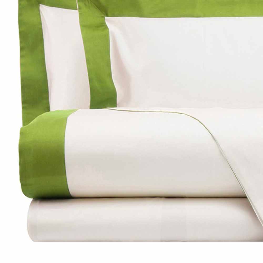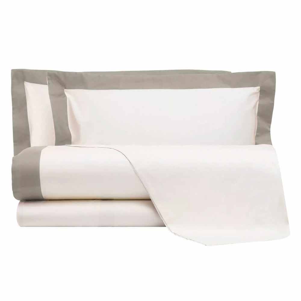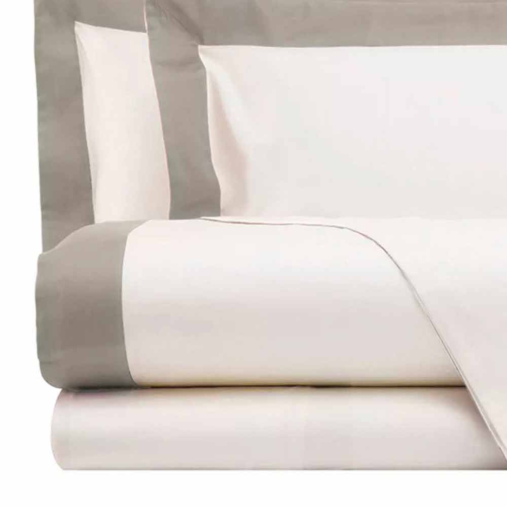 Complete with ivory sheets with contrasting border of different colors for double bed in satin 200 TC made in Italy.
