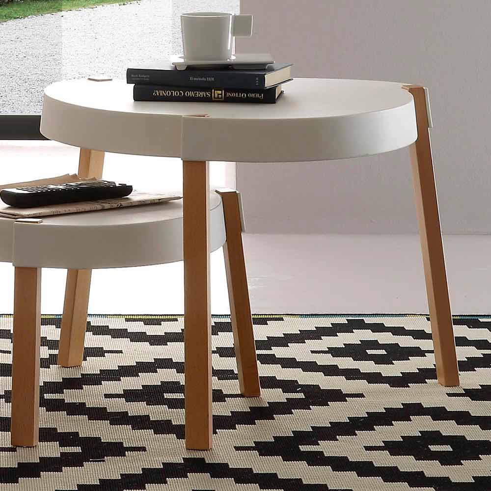 Modern design coffee table Pineto, with white polypropylene table top and beechwood legs.