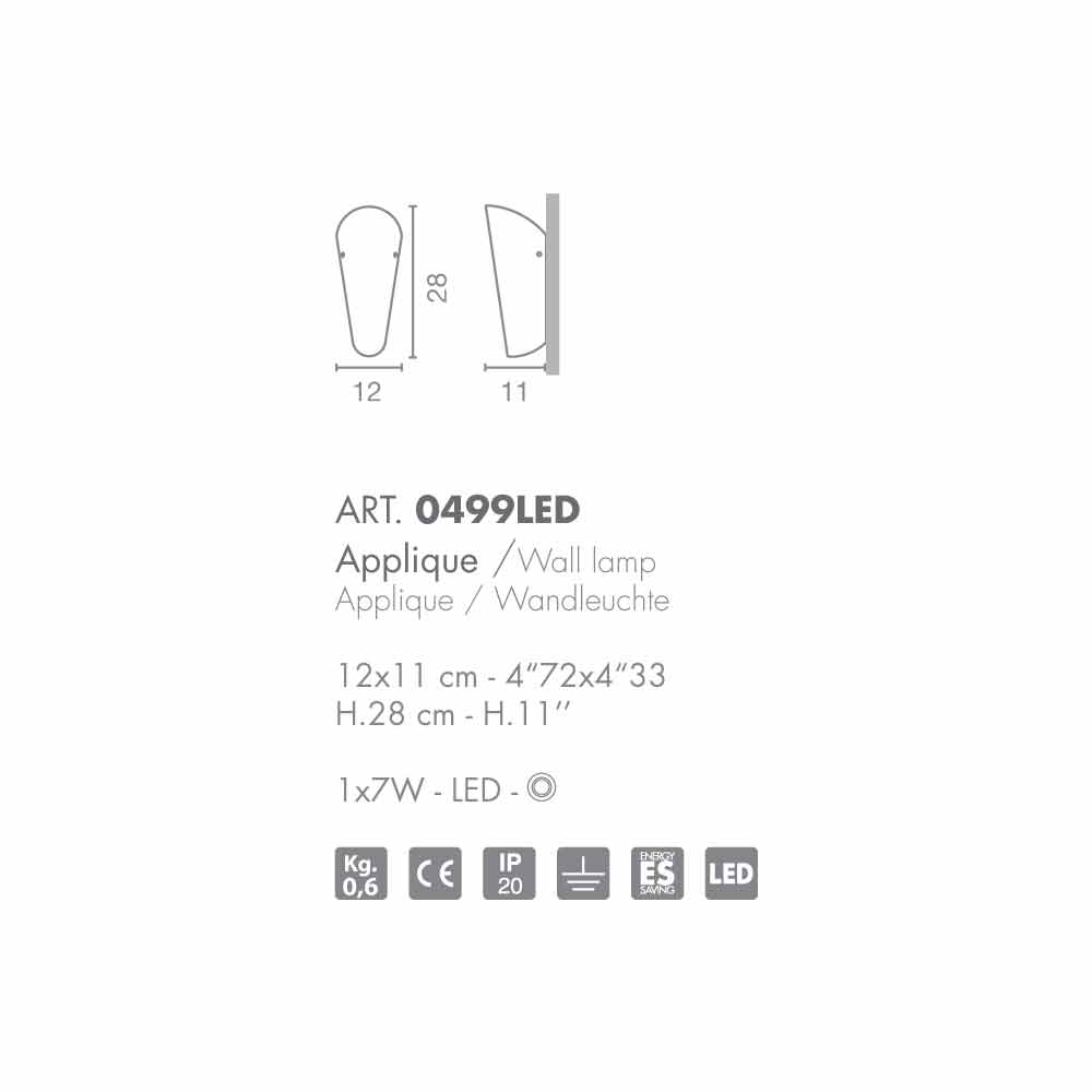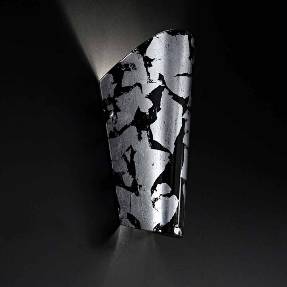 Versatile glass wall lamp with limited overall dimensions and countless variations of colour, available also with gold or silver decoration.