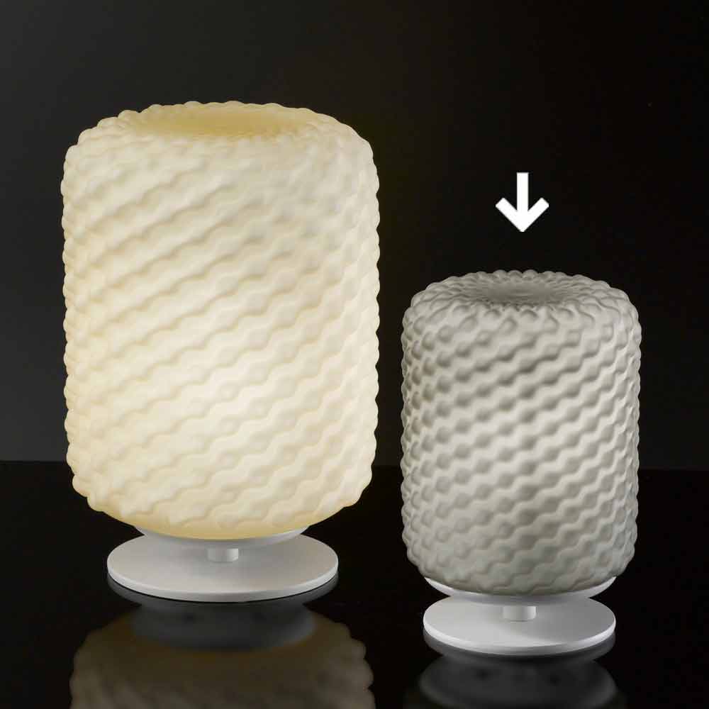 Rich collection of blown glass lamps with a specialised honeycomb relief manufacture that adorns the glass itself. The glass shade can be cylindrical in two sizes and also in a spherical one. Moreover, it is available in three satin colours: white, amber and smoked.