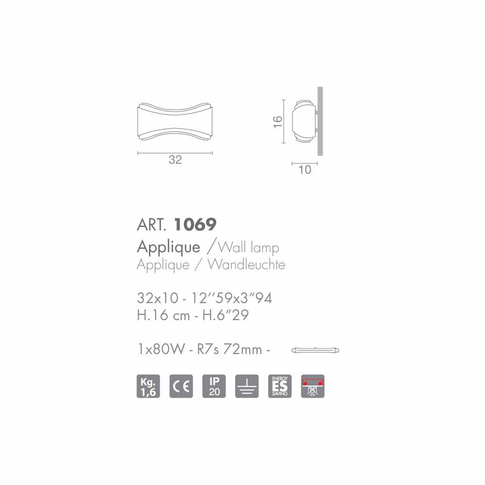 Selene Ionica wall lamp, made in Italy, 32x10xH16 cm, modern design.