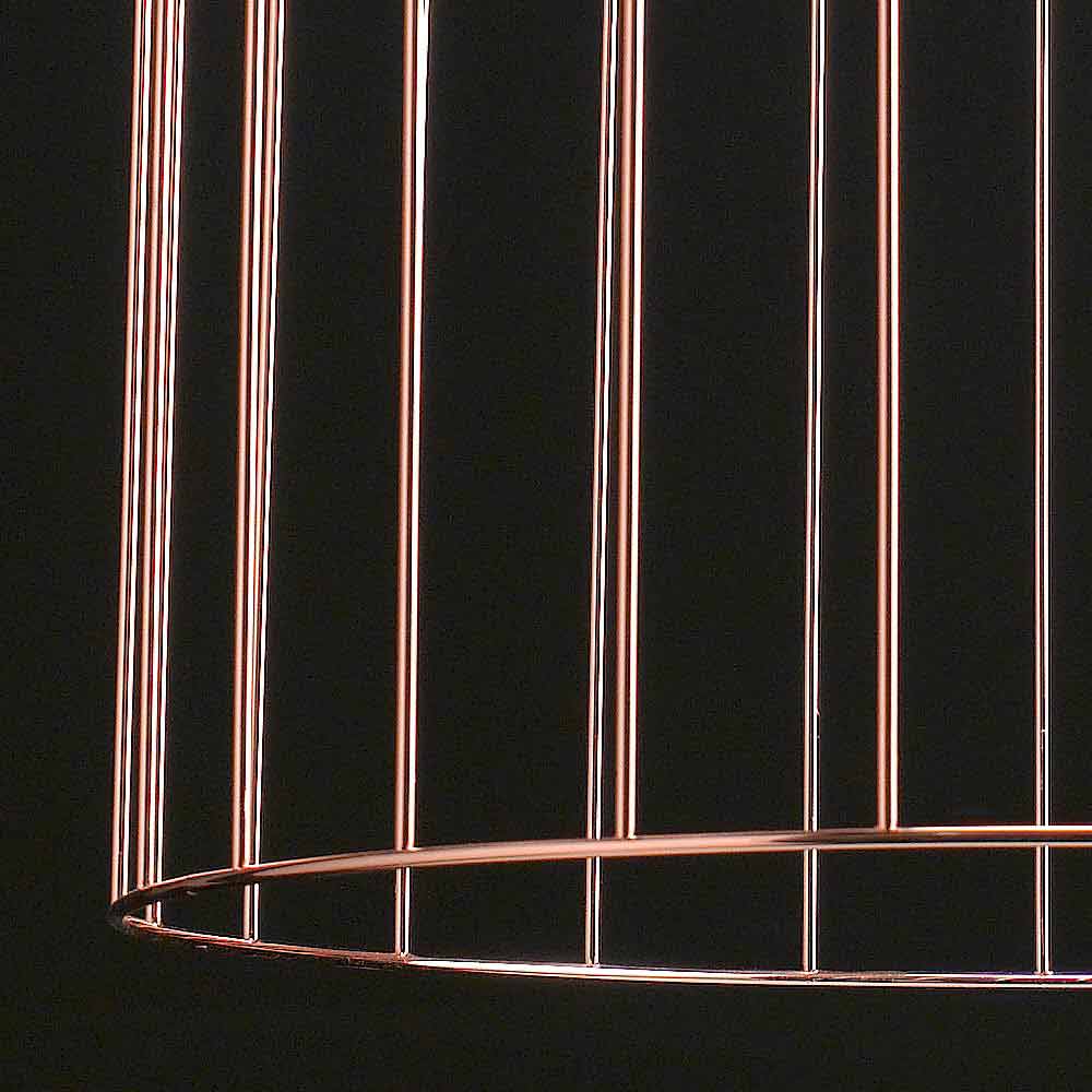 Collection of three suspensions and three table lamps, which can reach a considerable size, composed by a metal cage and a milky white blown glass ball.