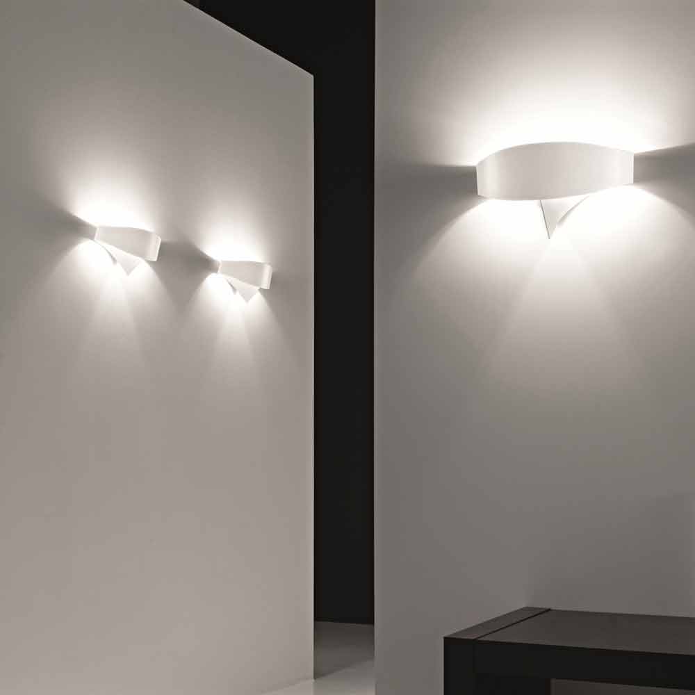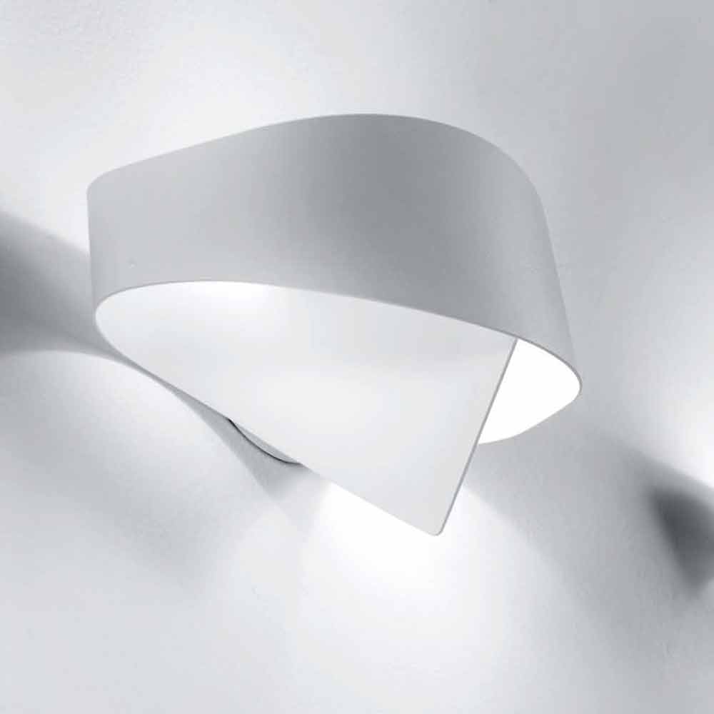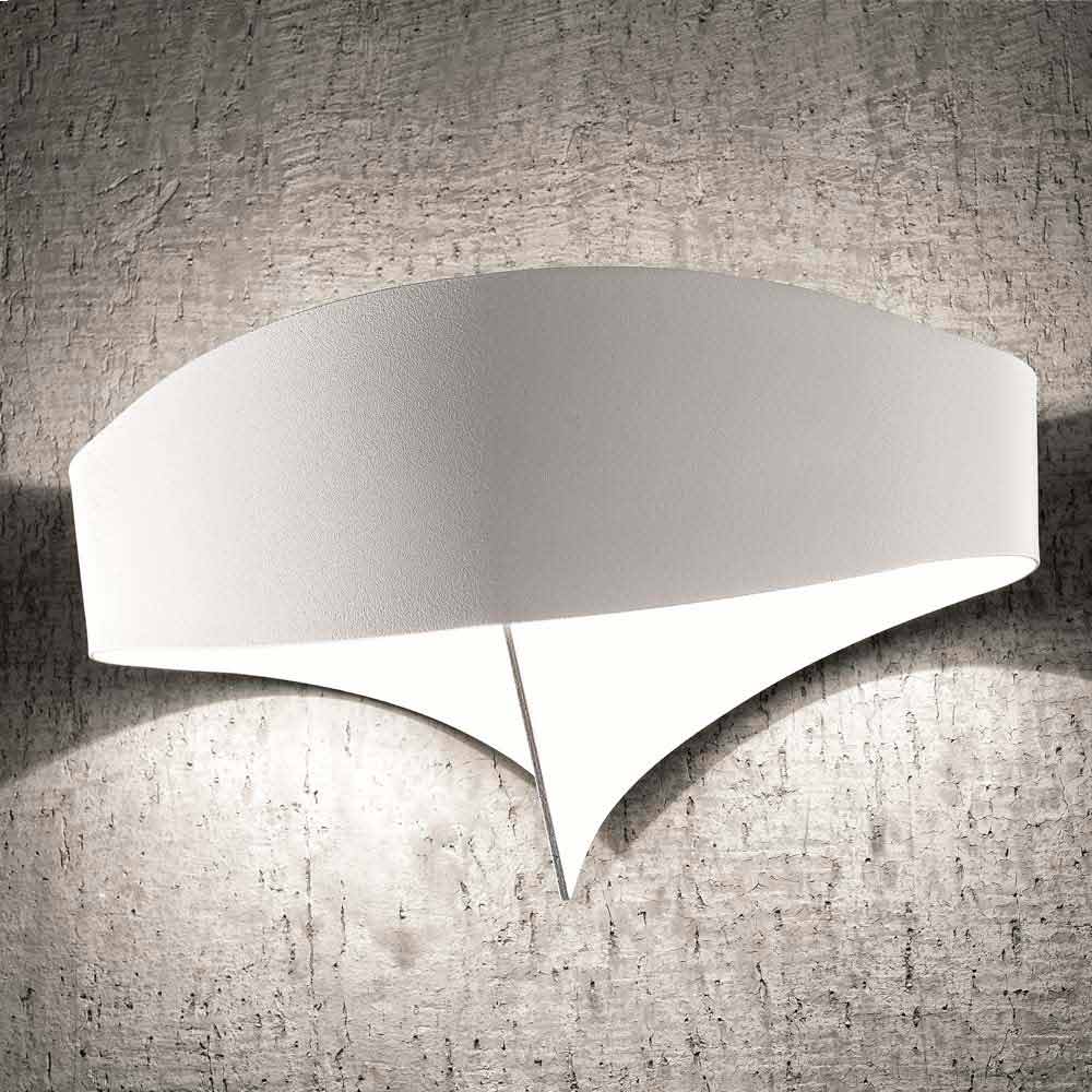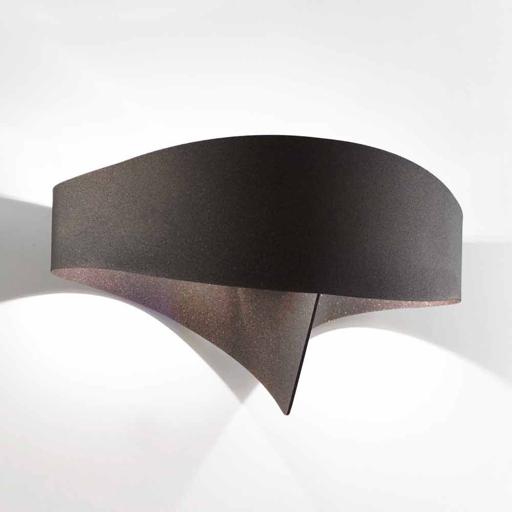 Wall lamp created starting from a laser cut steel stripe, bent by hand in order to create an undivided and wraparound element.