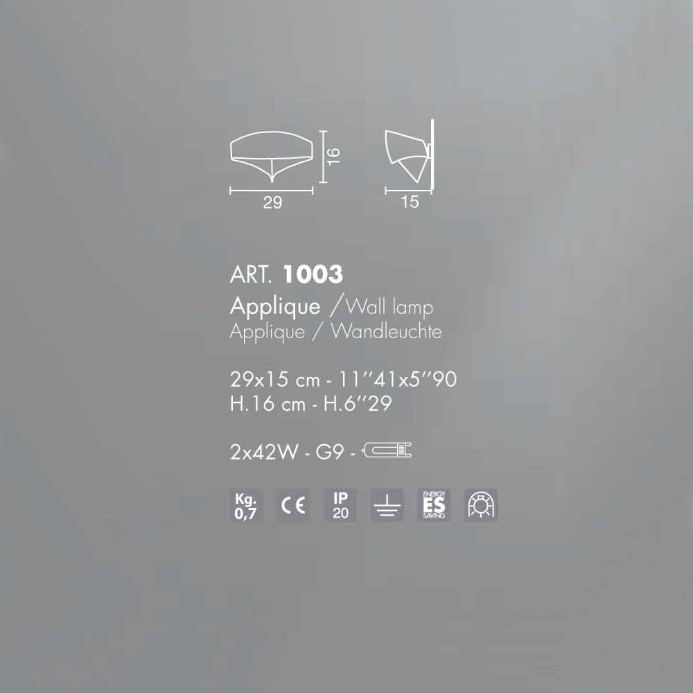 Bulb type: 2 light bulbs G9 42 W or LED 1x11W.