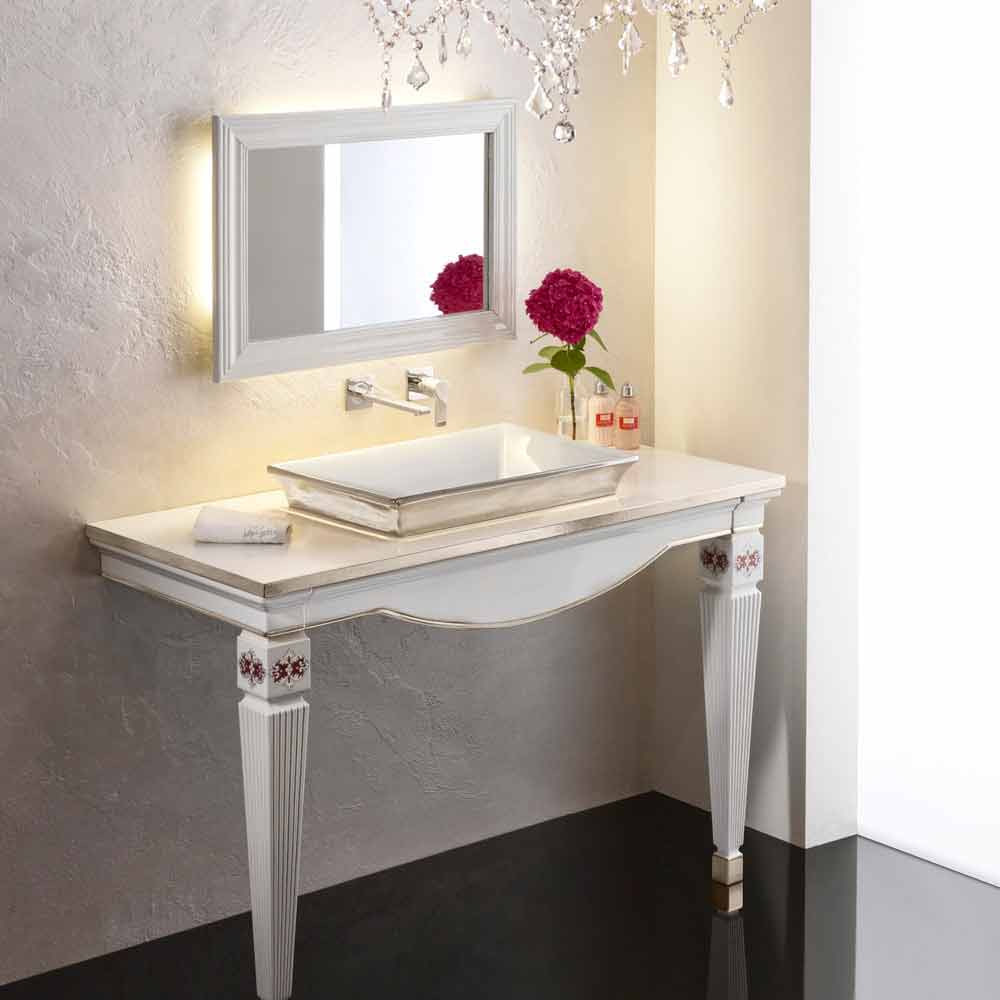 Semi-recessed bathroom sink handmade in Italy in fire clay with glossy white interior and exterior finished in platinum.