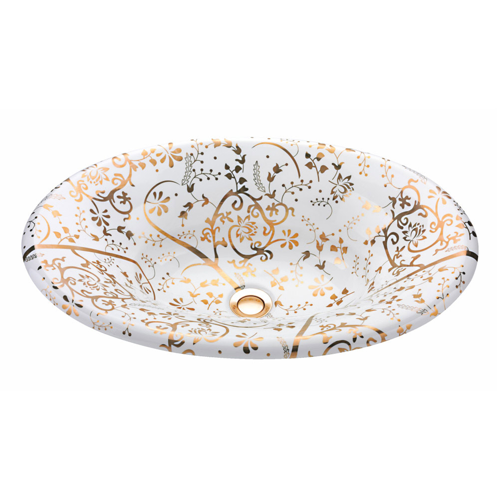 Semi-recessed washbasin in Fire Clay with Golden Spiral Made in Italy - Principe