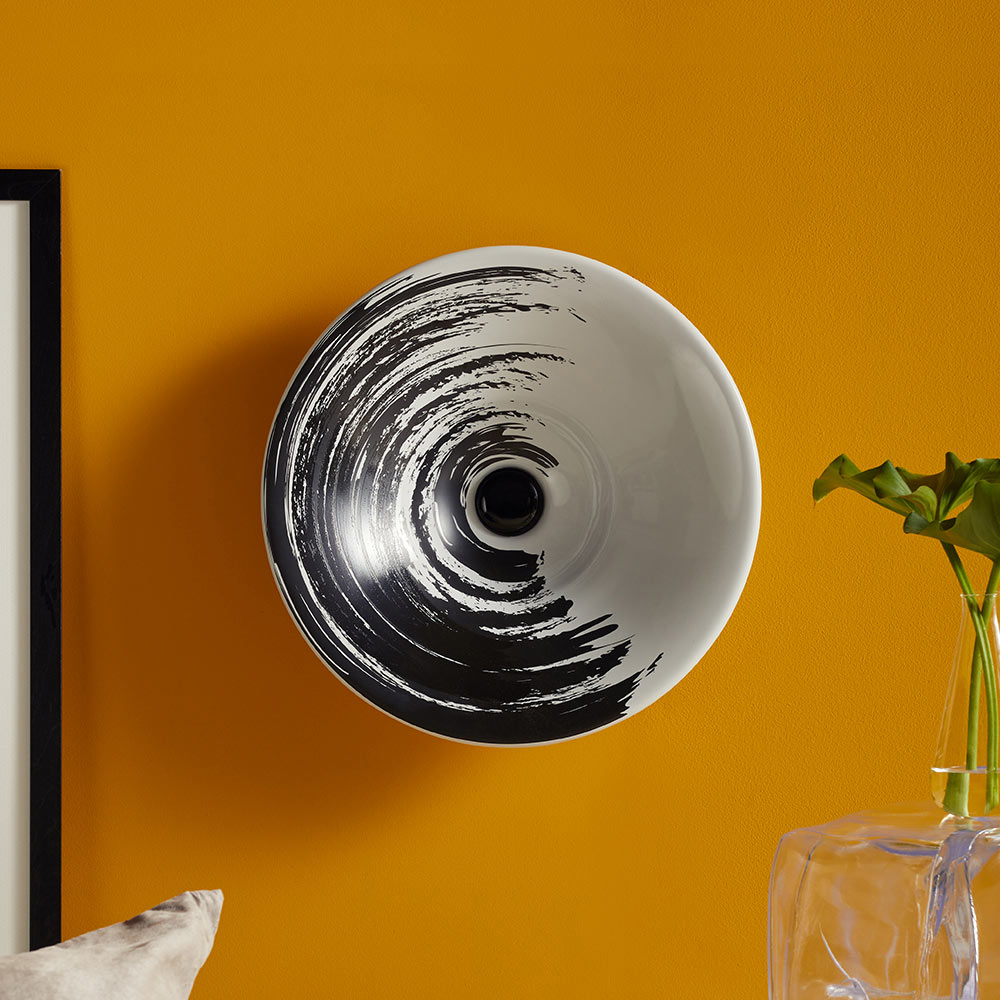 - internal relief decoration, wine paint on white enamel, external white enamel