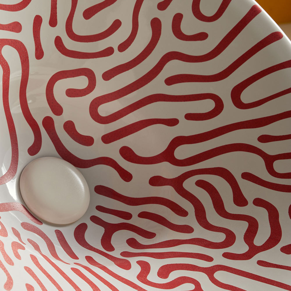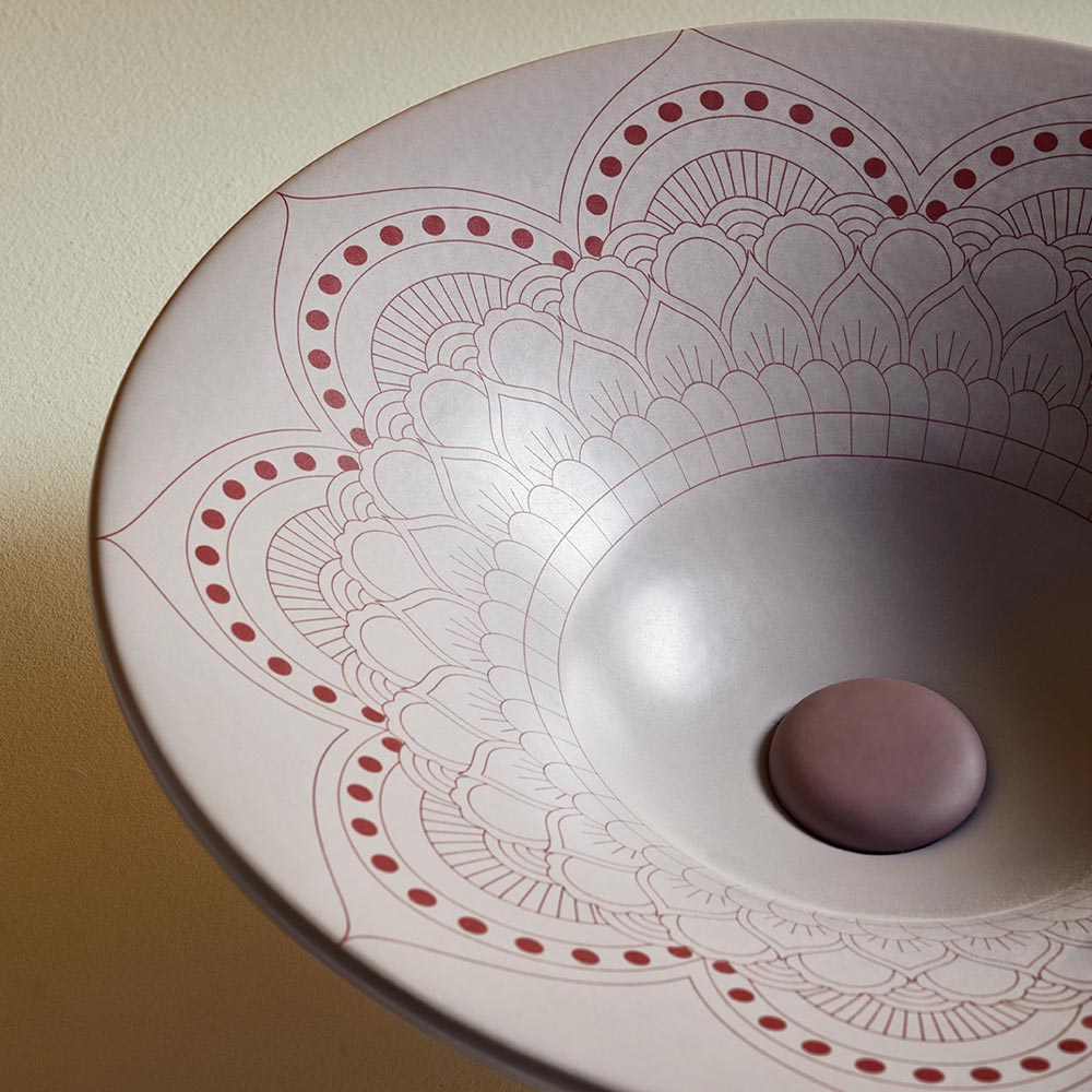 Semi-recessed sink made of top quality hand-coloured French porcelain, entirely