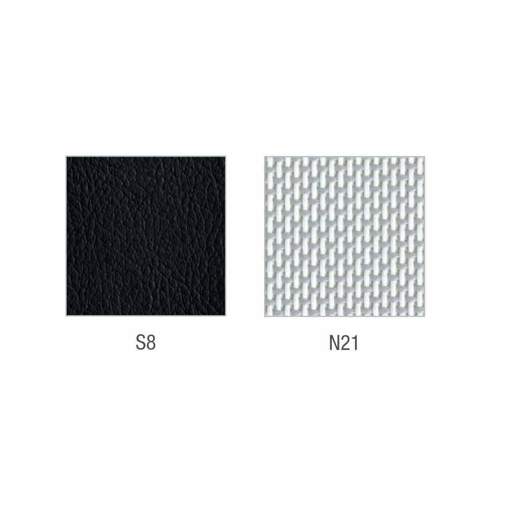 The internal structure of the seat is in PP 20% loaded with glass fiber and with longitudinal reinforcements in steel 10x10x1,5, overprinted, complete with a padded polyurethane foam cut from block, fireproof, with density 30 kg/m3 and thickness of 40 mm; moreover, it is equipped with the synchronized seat/back mechanism by Mina with two levers, made of die-cast aluminum, with 5 locking positions, anti-shock backrest safety system and spring tension adjustment for the oscillation calibration using a side handle. 22 ° backrest inclination, 11 ° seat inclination. The mechanism is certified for 24 hours use up to a maximum weight of 150 kg, according to BS 5459: Part 2/2000.